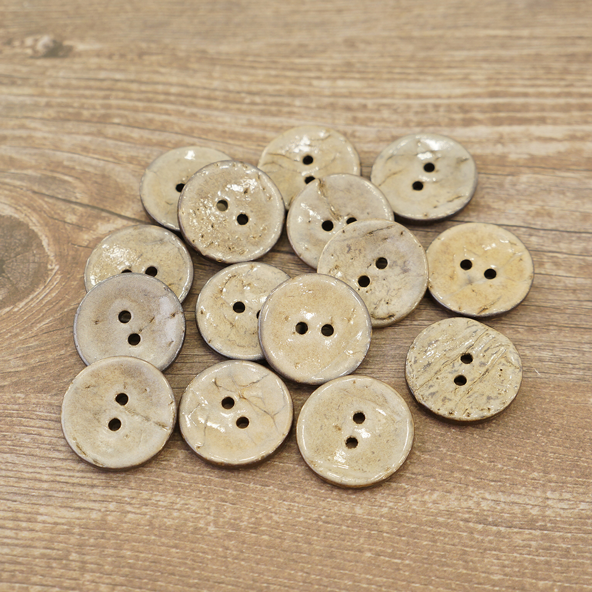 Пуговицы -с двумя отверстиями для прокола, могут быть разных диаметров: 11, 15, 20, 25 и 30 мм. Укомплектованы по 10, 15, 20, 30 штук в зависимости от диаметра.