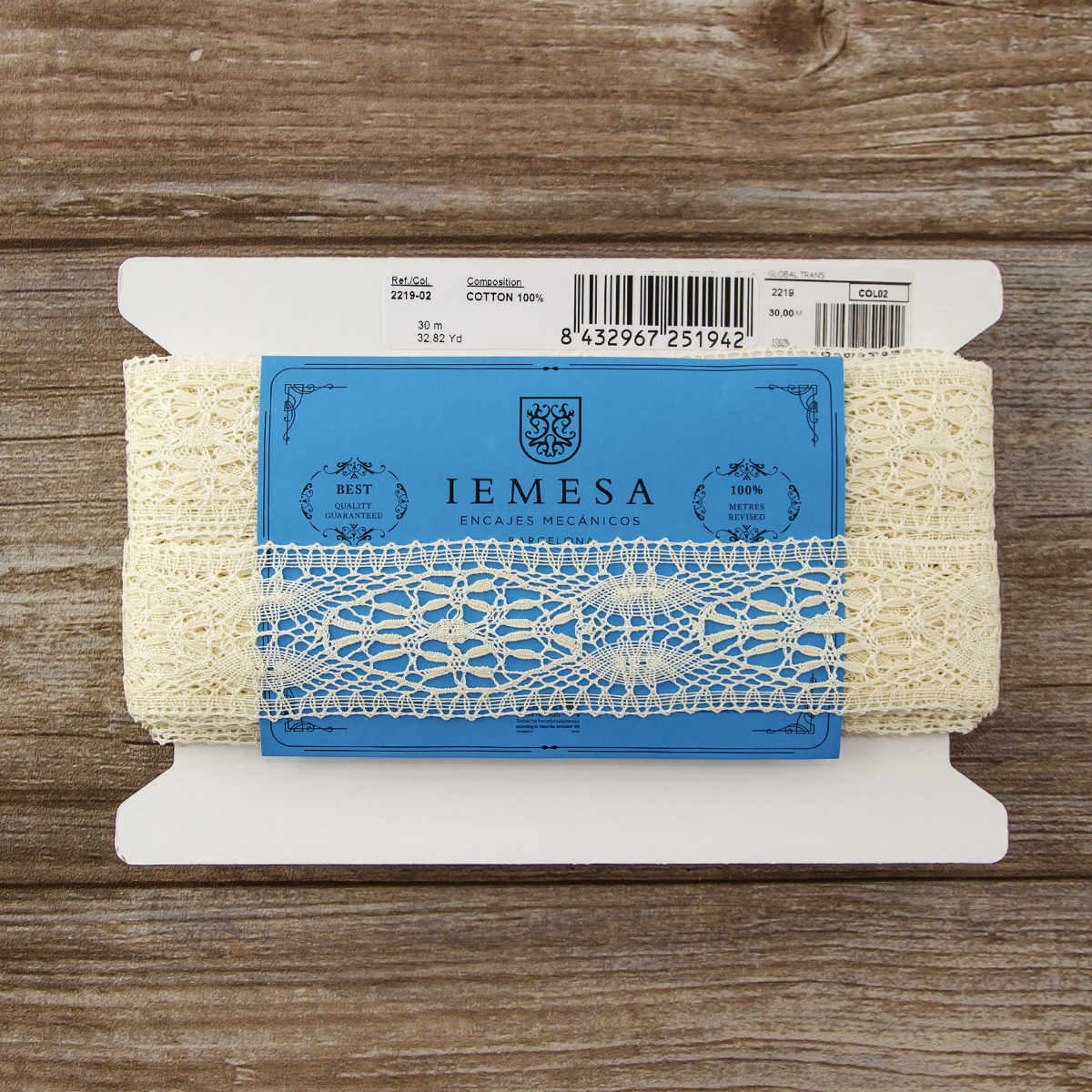 —Мерсеризованное хлопковое кружево, 50 мм, цвет экрю. Арт 2219/02