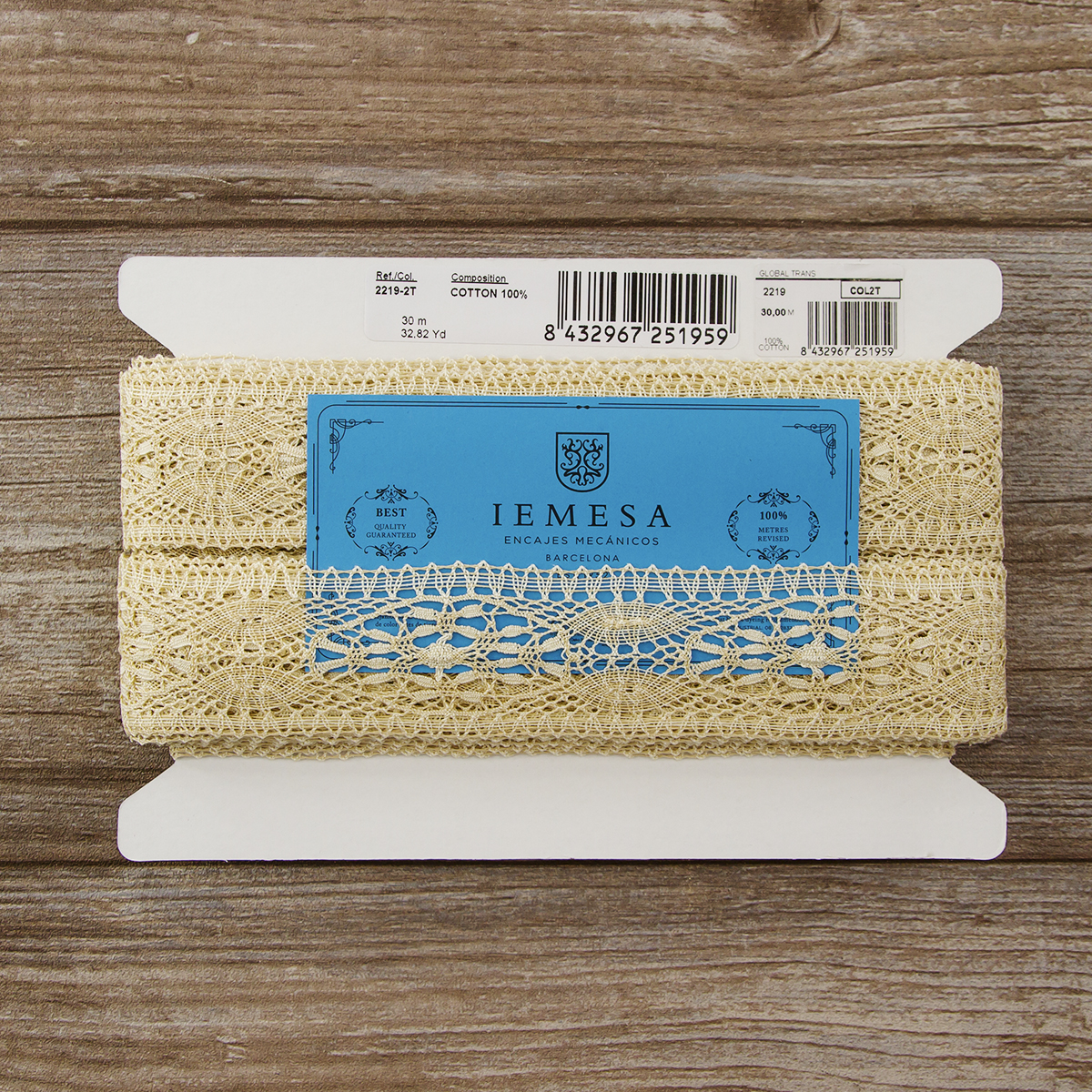 Изысканно-нежное испанское кружево, созданное современными дизайнерами по традиционным старинным рисункам и в традициях кружевоплетения. Изготовлено машинным способом, при этом имеет вид тонкой ручной работы. Использованы мерсеризованные хлопковые нити №40 для "тонкого" кружева и сочетание нитей №40 с толщинами №30, №24, №18 для придания фактурности. Кружево выпускается как в традиционных оттенках: снежно-белый, шампань, экрю, так и в соответствии с современным модным тенденциям в ярких и пастельных тонах. Сфера применения: декорирование интерьерного текстиля (подушки, покрывала, скатерти, дорожки, занавеси, абажуры), одежды в народном и винтажном стиле, рукодельных проектах по пошиву кукол, скрапбукингу. Производитель рекомендует деликатную стирку при 30 градусах, сушить в расправленном виде, гладить с изнанки при 2-ом температурном режиме на подложке. Кружево плетеное нельзя стирать в стиральной машине при 60 и 90 градусах на режиме "хлопок".