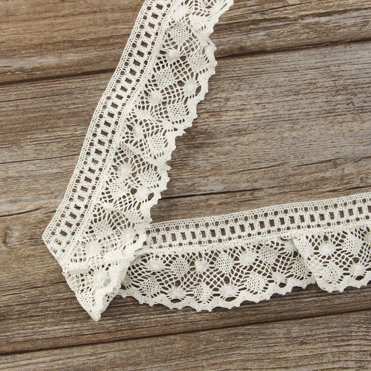 Изысканно-нежное испанское кружево, созданное современными дизайнерами по традиционным старинным рисункам и в традициях кружевоплетения. Изготовлено машинным способом, при этом имеет вид тонкой ручной работы. Использованы мерсеризованные хлопковые нити №40 для "тонкого" кружева и сочетание нитей №40 с толщинами №30, №24, №18 для придания фактурности. Кружево выпускается как в традиционных оттенках: снежно-белый, шампань, экрю, так и в соответствии с современным модным тенденциям в ярких и пастельных тонах. Сфера применения: декорирование интерьерного текстиля (подушки, покрывала, скатерти, дорожки, занавеси, абажуры), одежды в народном и винтажном стиле, рукодельных проектах по пошиву кукол, скрапбукингу. Производитель рекомендует деликатную стирку при 30 градусах, сушить в расправленном виде, гладить с изнанки при 2-ом температурном режиме на подложке. Кружево плетеное нельзя стирать в стиральной машине при 60 и 90 градусах на режиме "хлопок".
