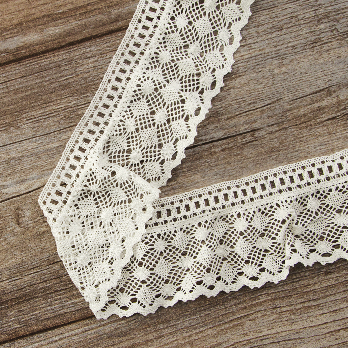Изысканно-нежное испанское кружево, созданное современными дизайнерами по традиционным старинным рисункам и в традициях кружевоплетения. Изготовлено машинным способом, при этом имеет вид тонкой ручной работы. Использованы мерсеризованные хлопковые нити №40 для "тонкого" кружева и сочетание нитей №40 с толщинами №30, №24, №18 для придания фактурности. Кружево выпускается как в традиционных оттенках: снежно-белый, шампань, экрю, так и в соответствии с современным модным тенденциям в ярких и пастельных тонах. Сфера применения: декорирование интерьерного текстиля (подушки, покрывала, скатерти, дорожки, занавеси, абажуры), одежды в народном и винтажном стиле, рукодельных проектах по пошиву кукол, скрапбукингу. Производитель рекомендует деликатную стирку при 30 градусах, сушить в расправленном виде, гладить с изнанки при 2-ом температурном режиме на подложке. Кружево плетеное нельзя стирать в стиральной машине при 60 и 90 градусах на режиме "хлопок".