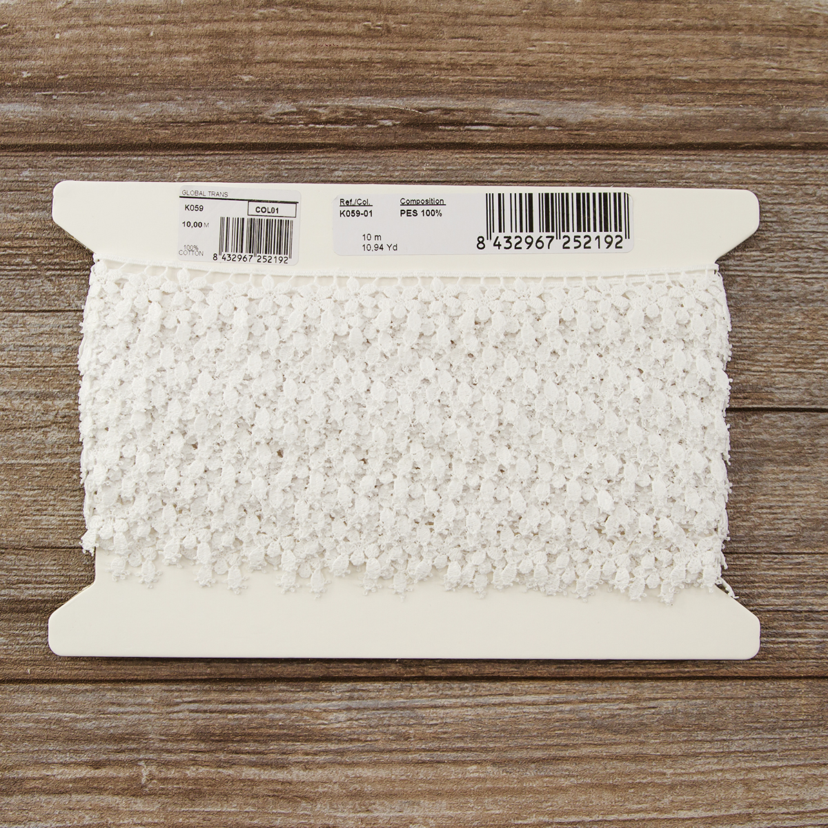 Изысканно-нежное испанское кружево, созданное современными дизайнерами по традиционным старинным рисункам и в традициях кружевоплетения. Изготовлено машинным способом, при этом имеет вид тонкой ручной работы. Использованы мерсеризованные хлопковые нити №40 для "тонкого" кружева и сочетание нитей №40 с толщинами №30, №24, №18 для придания фактурности. Кружево выпускается как в традиционных оттенках: снежно-белый, шампань, экрю, так и в соответствии с современным модным тенденциям в ярких и пастельных тонах. Сфера применения: декорирование интерьерного текстиля (подушки, покрывала, скатерти, дорожки, занавеси, абажуры), одежды в народном и винтажном стиле, рукодельных проектах по пошиву кукол, скрапбукингу. Производитель рекомендует деликатную стирку при 30 градусах, сушить в расправленном виде, гладить с изнанки при 2-ом температурном режиме на подложке. Кружево плетеное нельзя стирать в стиральной машине при 60 и 90 градусах на режиме "хлопок".