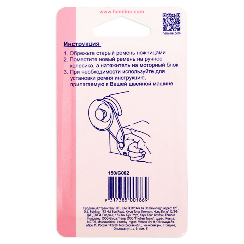 3. При необходимости используйте для установки ремня инструкцию, прилагаемую к Вашей швейной машине.
