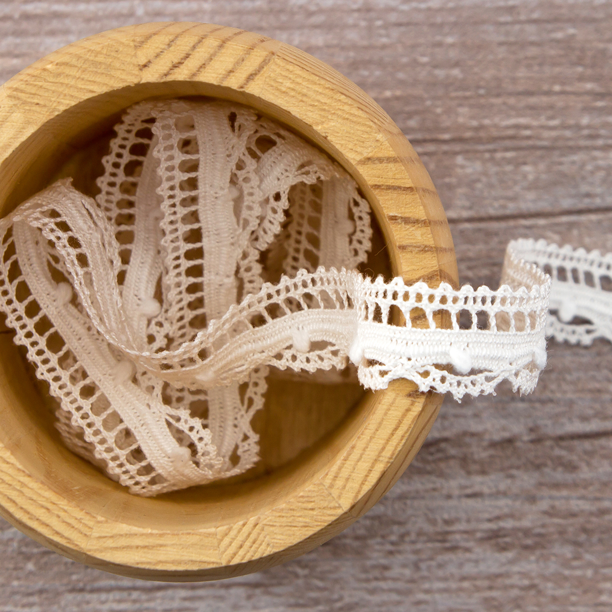 Мерсеризованное хлопковое кружево, 15 мм, белый. Арт 2150/01
