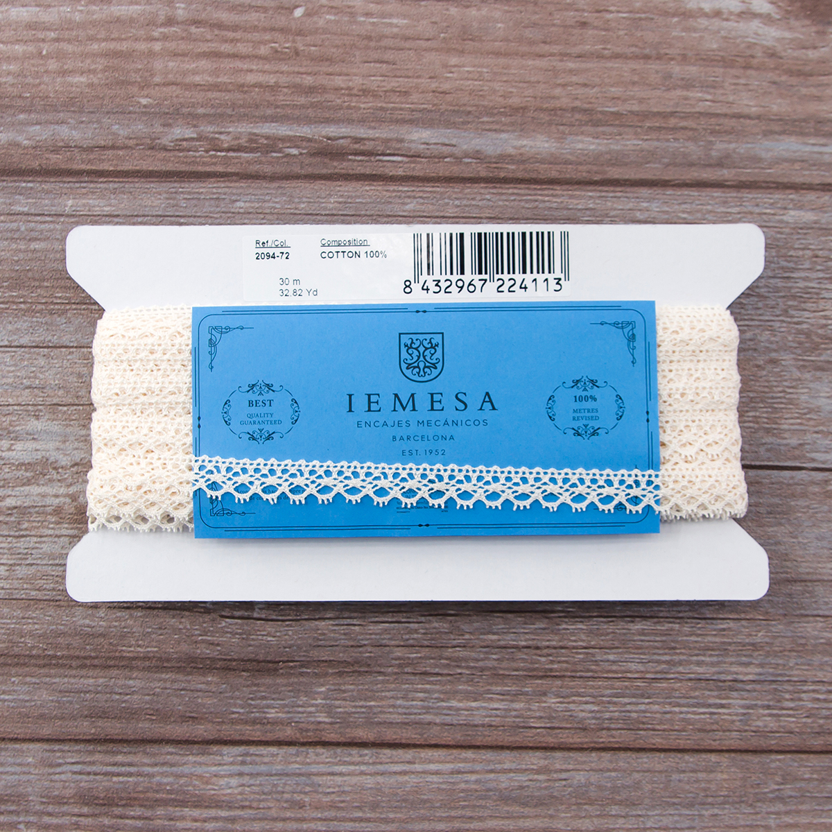 Изысканно-нежное испанское кружево, созданное современными дизайнерами по традиционным старинным рисункам и в традициях кружевоплетения. Изготовлено машинным способом, при этом имеет вид тонкой ручной работы. Использованы мерсеризованные хлопковые нити №40 для "тонкого" кружева и сочетание нитей №40 с толщинами №30, №24, №18 для придания фактурности. Кружево выпускается как в традиционных оттенках: снежно-белый, шампань, экрю, так и в соответствии с современным модным тенденциям в ярких и пастельных тонах. Сфера применения: декорирование интерьерного текстиля (подушки, покрывала, скатерти, дорожки, занавеси, абажуры), одежды в народном и винтажном стиле, рукодельных проектах по пошиву кукол, скрапбукингу. Производитель рекомендует деликатную стирку при 30 градусах, сушить в расправленном виде, гладить с изнанки при 2-ом температурном режиме на подложке. Кружево плетеное нельзя стирать в стиральной машине при 60 и 90 градусах на режиме "хлопок".