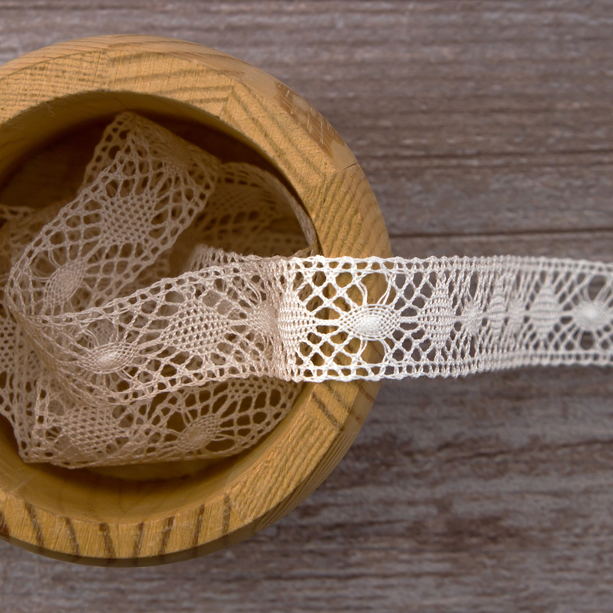 Изысканно-нежное испанское кружево, созданное современными дизайнерами по традиционным старинным рисункам и в традициях кружевоплетения. Изготовлено машинным способом, при этом имеет вид тонкой ручной работы. Использованы мерсеризованные хлопковые нити №40 для "тонкого" кружева и сочетание нитей №40 с толщинами №30, №24, №18 для придания фактурности. Кружево выпускается как в традиционных оттенках: снежно-белый, шампань, экрю, так и в соответствии с современным модным тенденциям в ярких и пастельных тонах. Сфера применения: декорирование интерьерного текстиля (подушки, покрывала, скатерти, дорожки, занавеси, абажуры), одежды в народном и винтажном стиле, рукодельных проектах по пошиву кукол, скрапбукингу. Производитель рекомендует деликатную стирку при 30 градусах, сушить в расправленном виде, гладить с изнанки при 2-ом температурном режиме на подложке. Кружево плетеное нельзя стирать в стиральной машине при 60 и 90 градусах на режиме "хлопок".