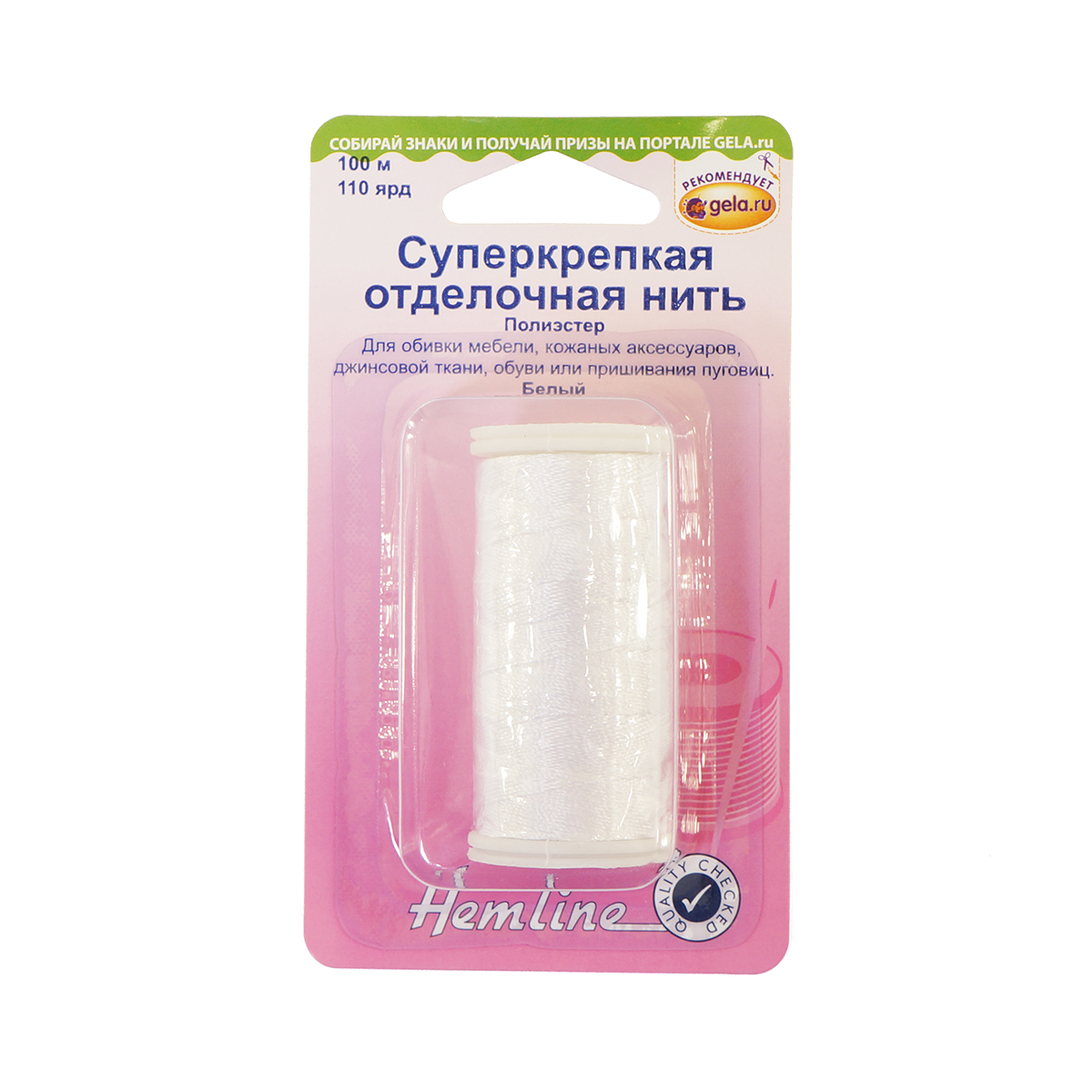 Нить отделочная HEMLINE, 100 м - 100% особо прочные полиэфирные нити, толщина 30. Высокая прочность, стойкость к разрыву и хорошая износостойкость. Уменьшите обрыв нитей и замену нитей во время шитья. Подходит для использования на обуви, кожаных аксессуарах, джинсовой ткани или пришивания пуговиц.