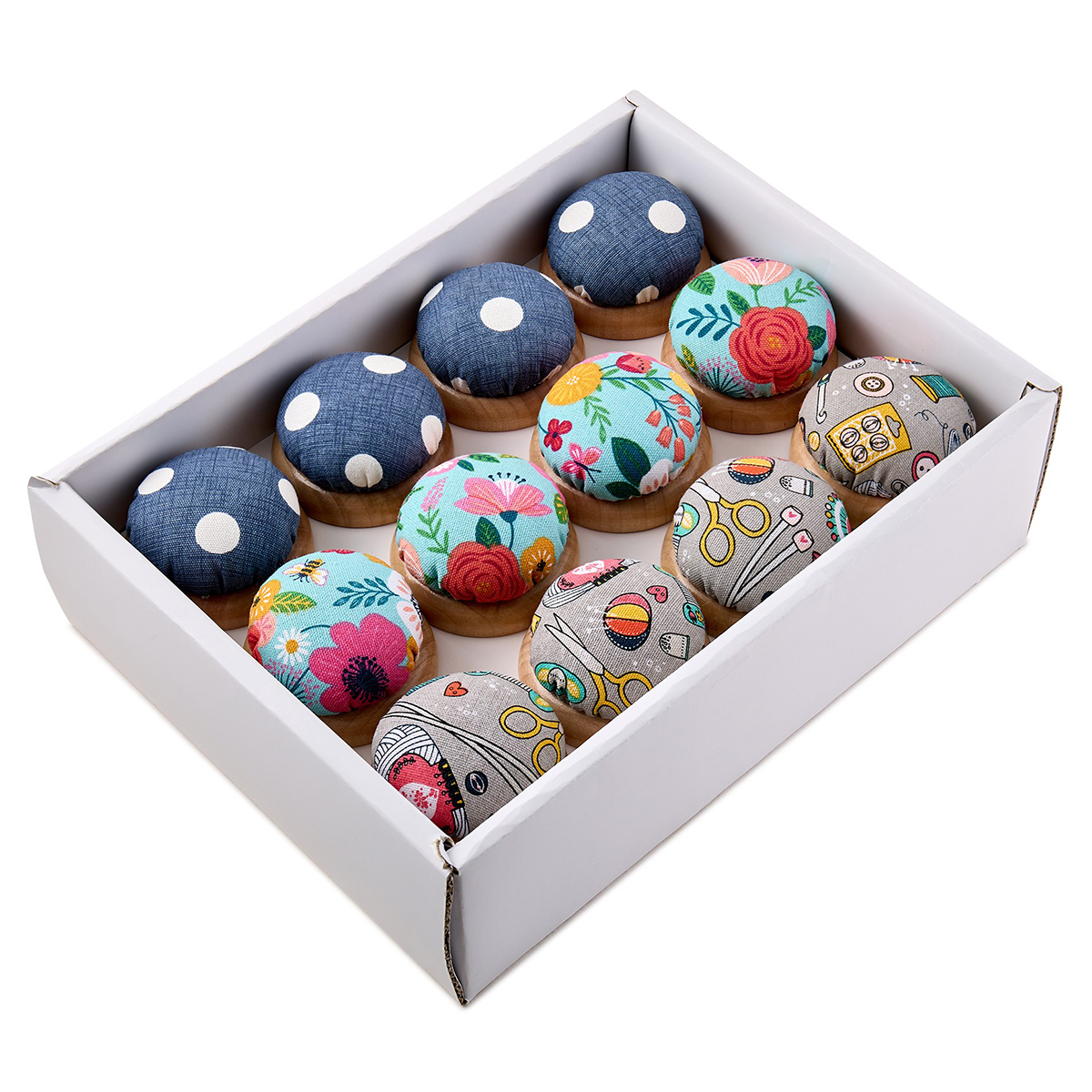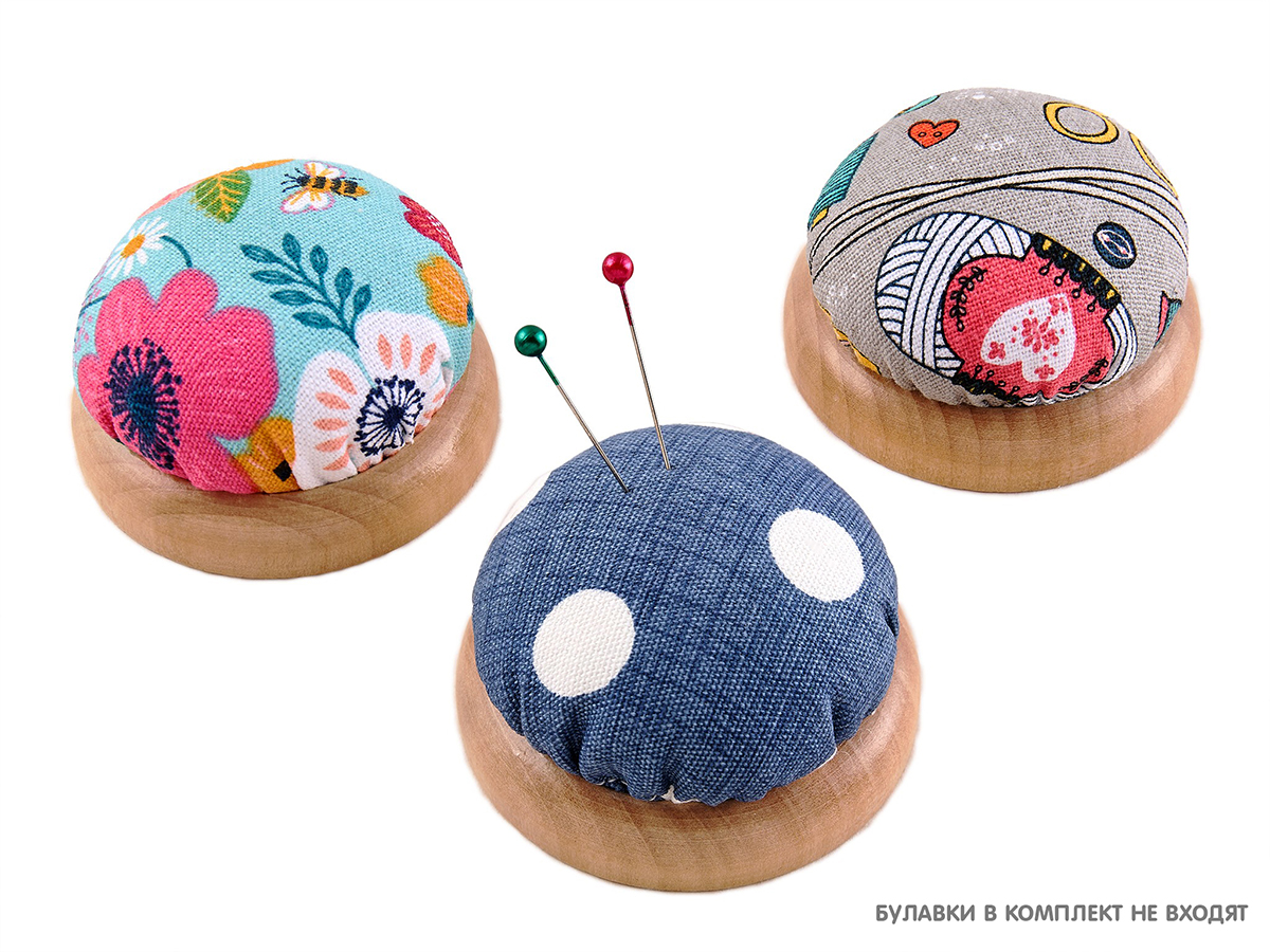 Игольница-подушечка на деревянной основе. Хлопковая поверхность. Маленькая и удобная форма для швейных работ. Аккуратно храните булавки и поддерживайте порядок на рабочем месте. Выпускается в 3-х красивых дизайнах. Дисплей без пластика и бумаги. Материал содержимого: дерево, хлопок, полипропиленовый хлопок. Размеры изделия: диаметр 6 см x 4 см. Размеры дисплея (в сборе): 19,5 x 26 x 8 см. Вес брутто дисплея: 750 г.