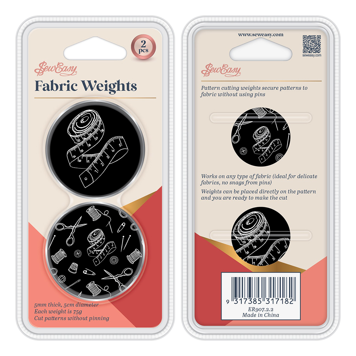 Утяжелитель портновский для фиксации выкройки и кроя ткани. Используют для вырезания лекал закрепляют лекала на ткани без использования булавок. Работает с любым типом ткани (идеально подходит для деликатных тканей, не цепляется за булавки). Утяжелители можно разместить непосредственно на выкройке, и вы готовы к крою. Размер каждого утяжелителя: диаметр 5 см, толщина 5 мм. Вес каждого утяжелителя 75 г. Материал наполнения: железо с хромированной отделкой по краям. Блистерная упаковка. Размеры упаковки: 16,3 x 8,2 x 1,2 см. Вес брутто товара 170 г.