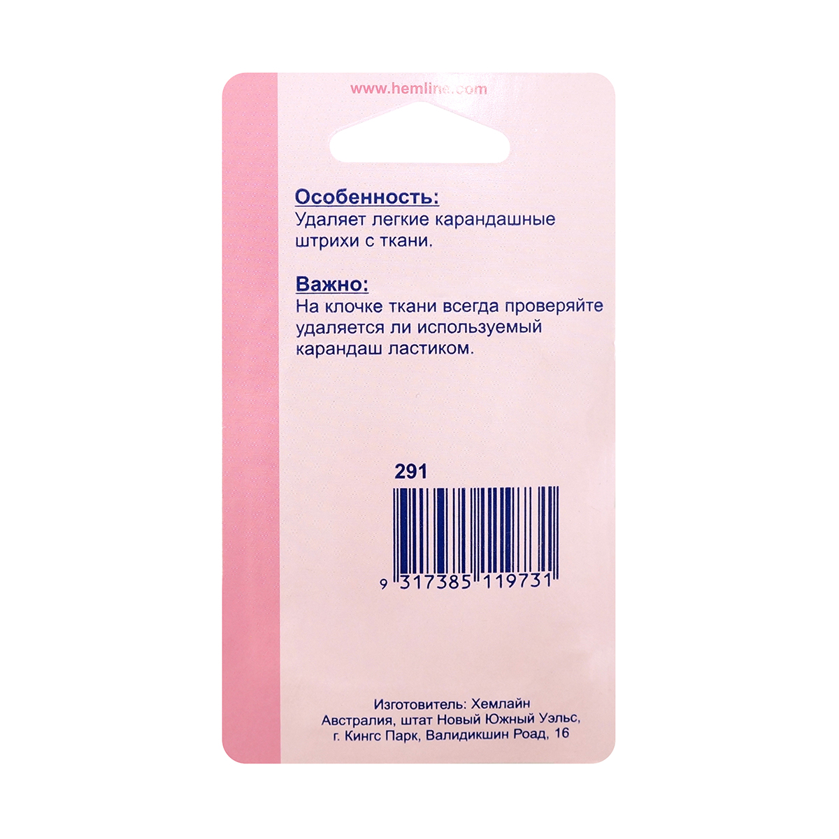Не оставляет пятен. Удаляет легкие карандашные штрихи с ткани.