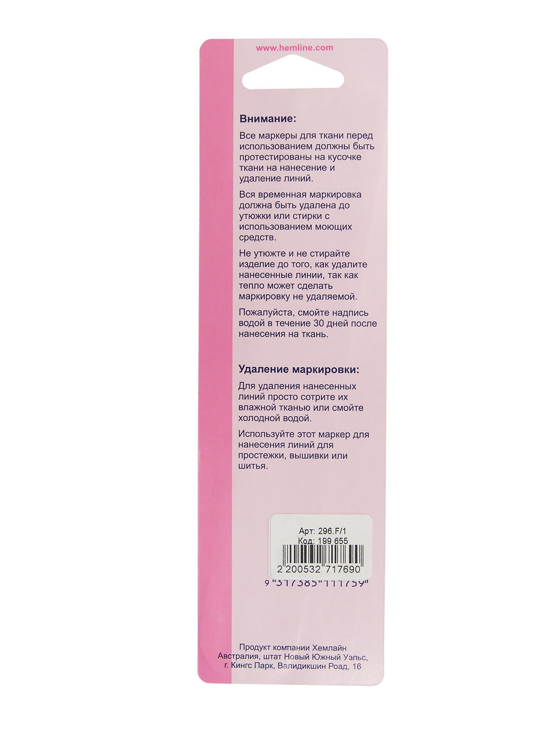 Внимание! Не смывайте маркер горячей водой и не проглаживайте ткань, пока линии видны, так как в этом случае линии маркера могут стать несмываемыми.
