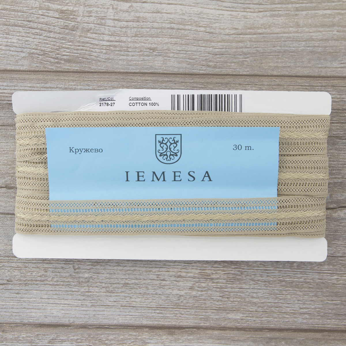 —Мерсеризованное хлопковое кружево, 26 мм, цвет бежевый. Арт 2178/27