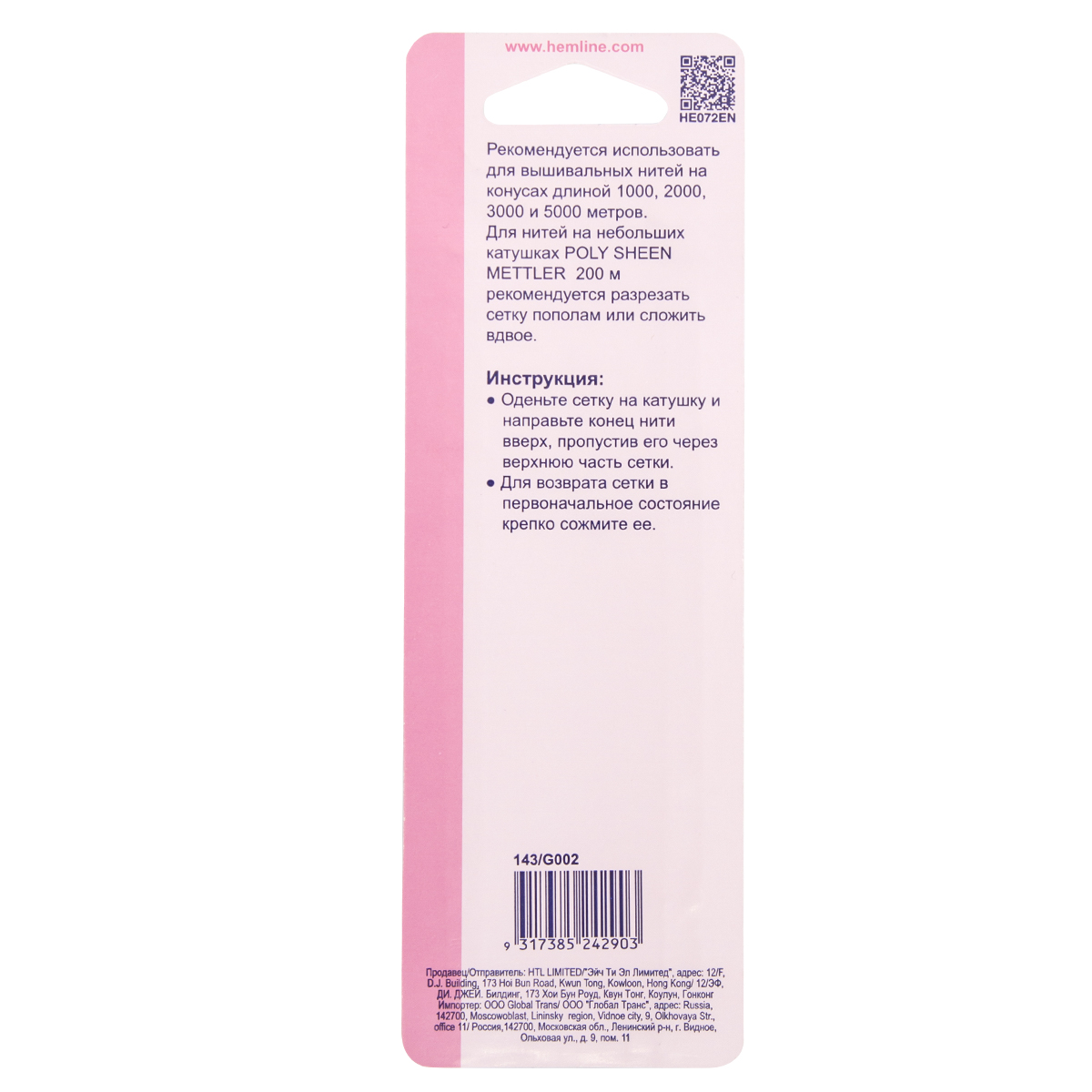 Для нитей на небольших катушках POLY SHEEN METTLER 200 м рекомендуется разрезать сетку пополам или сложить вдвое.