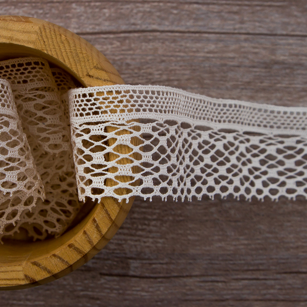 Изысканно-нежное испанское кружево, созданное современными дизайнерами по традиционным старинным рисункам и в традициях кружевоплетения. Изготовлено машинным способом, при этом имеет вид тонкой ручной работы. Использованы мерсеризованные хлопковые нити №40 для "тонкого" кружева и сочетание нитей №40 с толщинами №30, №24, №18 для придания фактурности. Кружево выпускается как в традиционных оттенках: снежно-белый, шампань, экрю, так и в соответствии с современным модным тенденциям в ярких и пастельных тонах. Сфера применения: декорирование интерьерного текстиля (подушки, покрывала, скатерти, дорожки, занавеси, абажуры), одежды в народном и винтажном стиле, рукодельных проектах по пошиву кукол, скрапбукингу. Производитель рекомендует деликатную стирку при 30 градусах, сушить в расправленном виде, гладить с изнанки при 2-ом температурном режиме на подложке. Кружево плетеное нельзя стирать в стиральной машине при 60 и 90 градусах на режиме "хлопок".