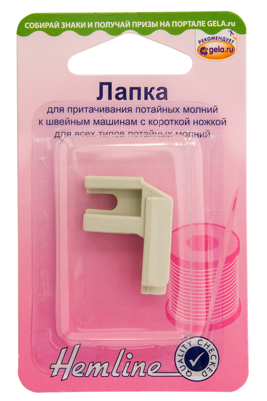 Лапка для притачивания потайных молний подходит для большинства современных машин с короткой ножкой (Bernina, Elna, Janome, Pfaff, Singer).