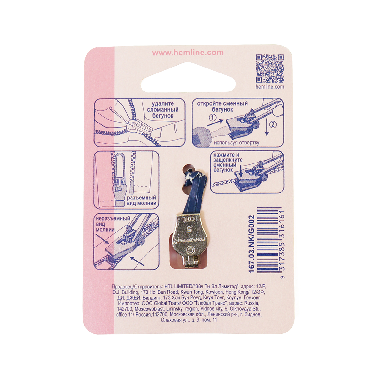Произведены сменные бегунки Hemline на Тайване. Созданием дизайна занимались европейские мастера - дизайнеры. Премиальное качество, так как при производстве используется первичная сталь, а не переработанная.