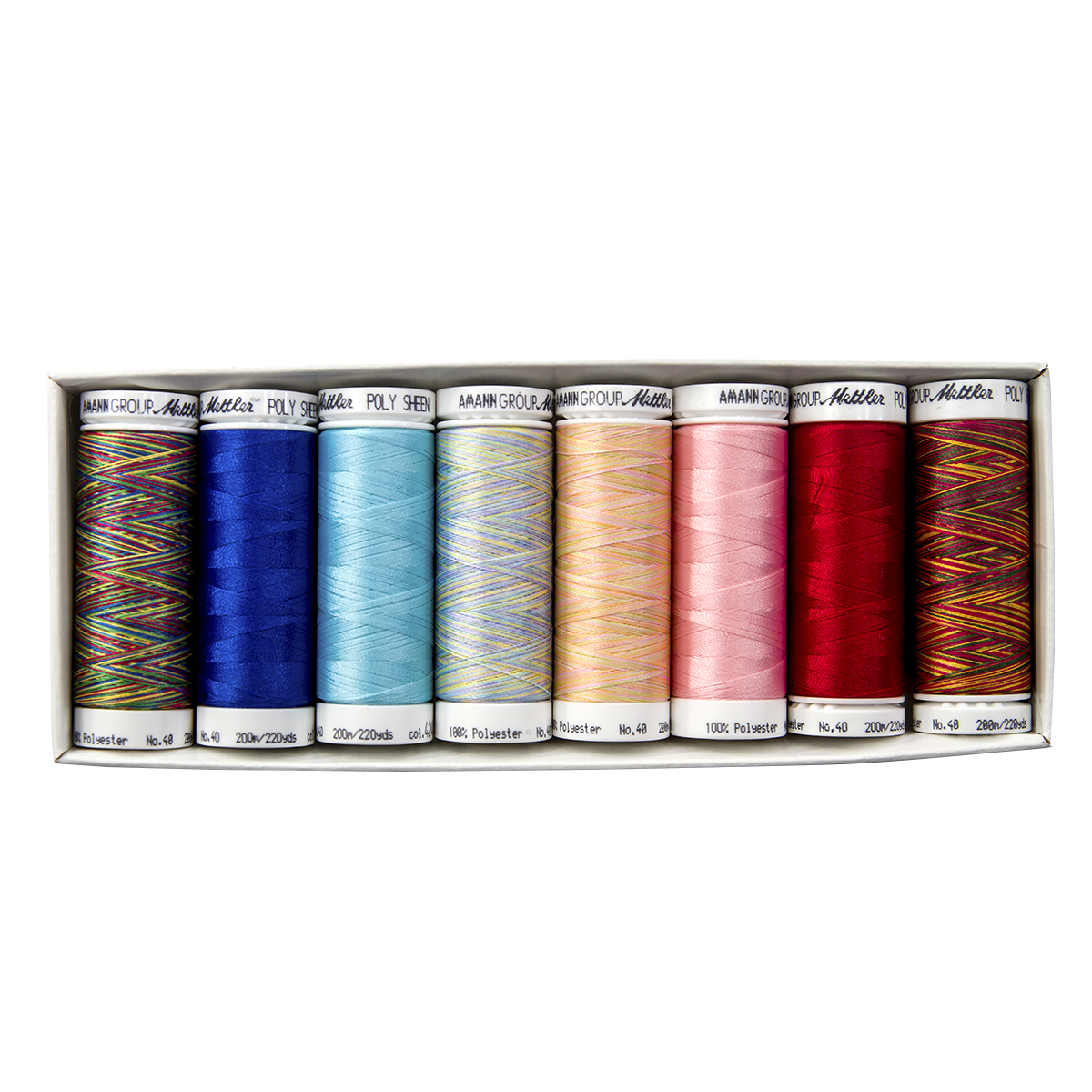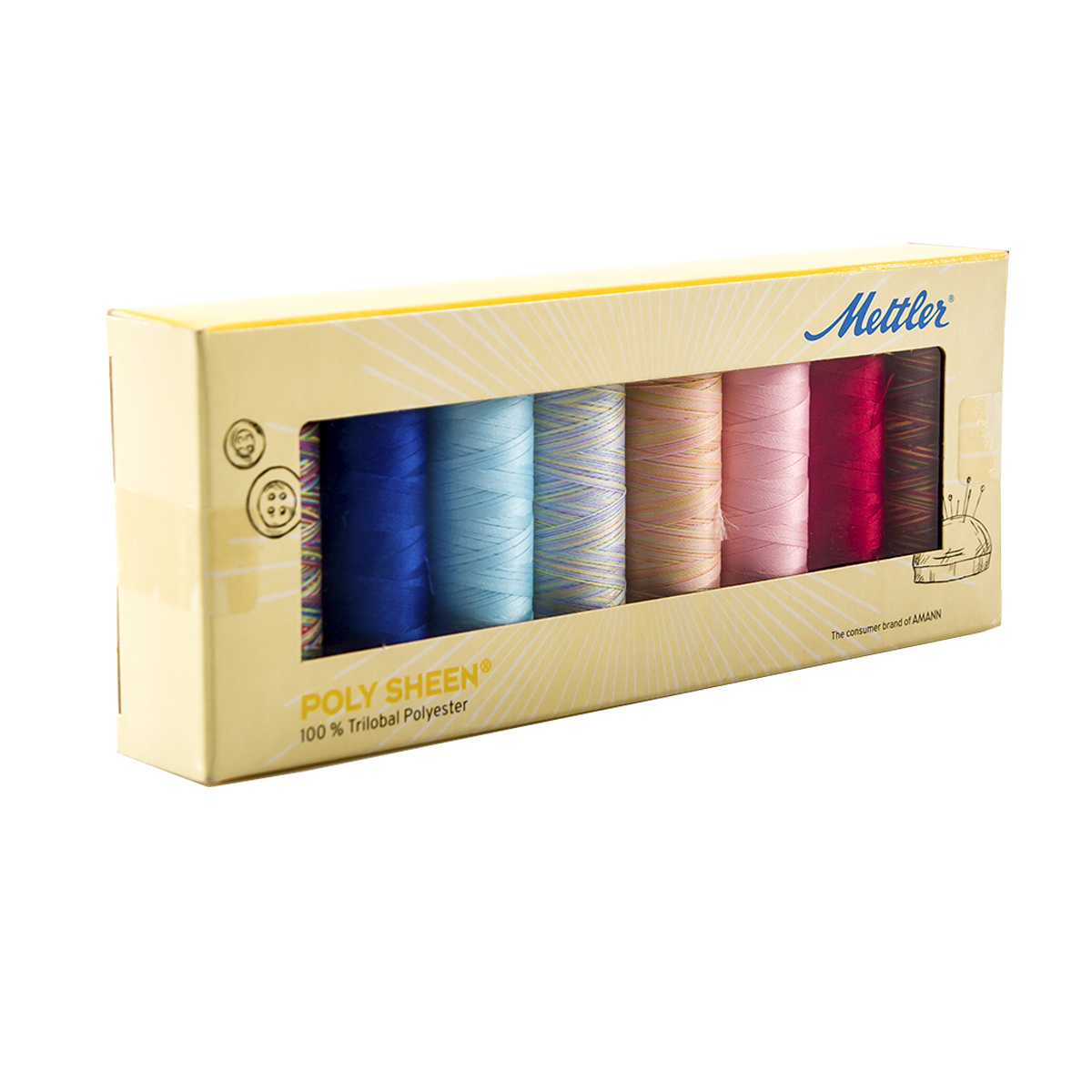 Набор с нитками Poly Sheen в подарочной упаковке, 8 катушек. POLY SHEEN - это прочная, декоративная, блестящая швейная нить, которой не только замечательно вышивать, но она универсальна благодаря своей сверхпрочной и устойчивой к истиранию текстуре. Красочные декоративные швы выигрышно смотрятся с швейной ниткой на спортивной и повседневной одежде, джинсах, детской одежде. Набор PS87Kids-Kit содержит 8 катушек по 200 м прекрасных цветов.