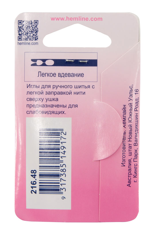 Иглы для ручного шитья с легкой заправкой нити сверху ушка предназначены для слабовидящих.