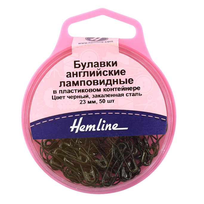 Короткие английские булавки (55 шт.) безопасные в удобном закрывающемся пластиковом контейнере. Булавка имеет ламповидную форму, традиционное спиральное кольцо отсутствует. Длина булавки 23 мм. Цвет булавок: черный. Рекомендуется использовать для деликатных тканей - для предотвращения попадания ткани в загиб. Внимание! Детям использовать булавки только под присмотром взрослых.
