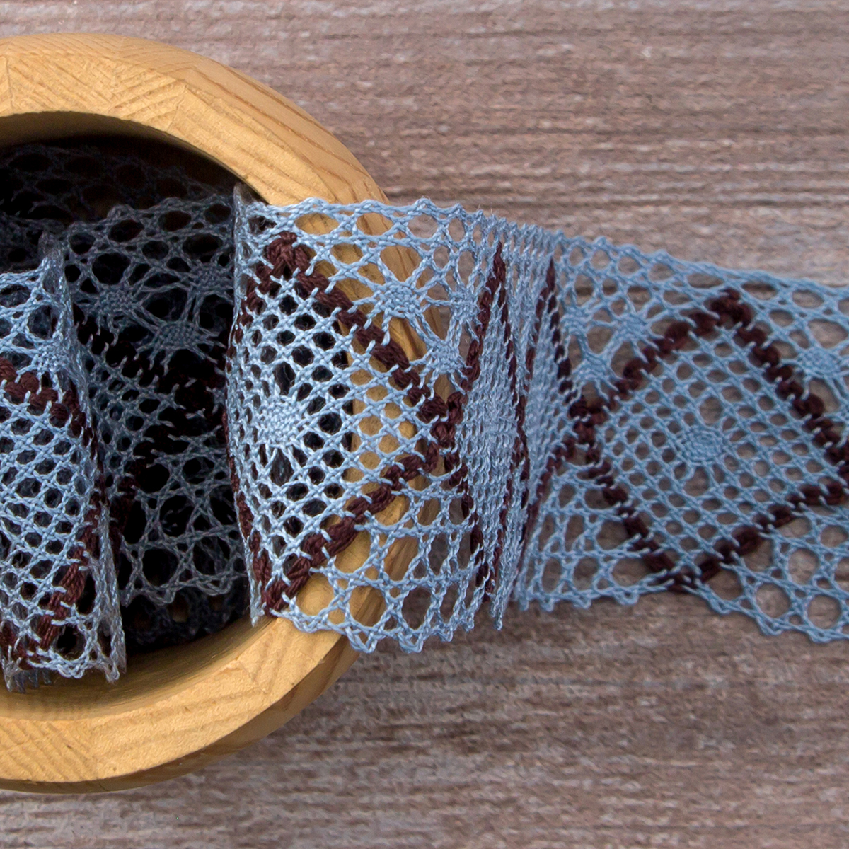 Изысканно-нежное испанское кружево, созданное современными дизайнерами по традиционным старинным рисункам и в традициях кружевоплетения. Изготовлено машинным способом, при этом имеет вид тонкой ручной работы. Использованы мерсеризованные хлопковые нити №40 для "тонкого" кружева и сочетание нитей №40 с толщинами №30, №24, №18 для придания фактурности. Кружево выпускается как в традиционных оттенках: снежно-белый, шампань, экрю, так и в соответствии с современным модным тенденциям в ярких и пастельных тонах. Сфера применения: декорирование интерьерного текстиля (подушки, покрывала, скатерти, дорожки, занавеси, абажуры), одежды в народном и винтажном стиле, рукодельных проектах по пошиву кукол, скрапбукингу. Производитель рекомендует деликатную стирку при 30 градусах, сушить в расправленном виде, гладить с изнанки при 2-ом температурном режиме на подложке. Кружево плетеное нельзя стирать в стиральной машине при 60 и 90 градусах на режиме "хлопок".