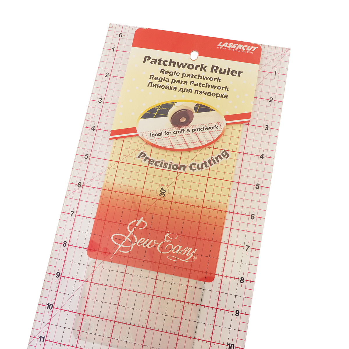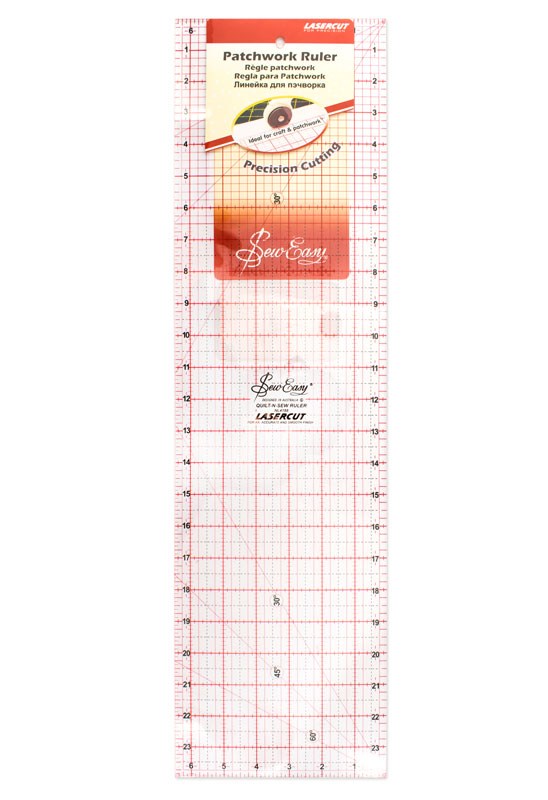 Самая популярная линейка для кроя большинства деталей в пэчворке. Идеальна для кроя широких отрезов. Имеется разметка углов: 45* по центру - удобно кроить косую бейку и на обеих концах разметка 30* и 60*.