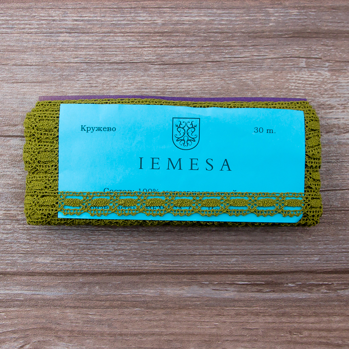 —Мерсеризованное хлопковое кружево, 15 мм, цвет оливковый. Арт 1798/61
