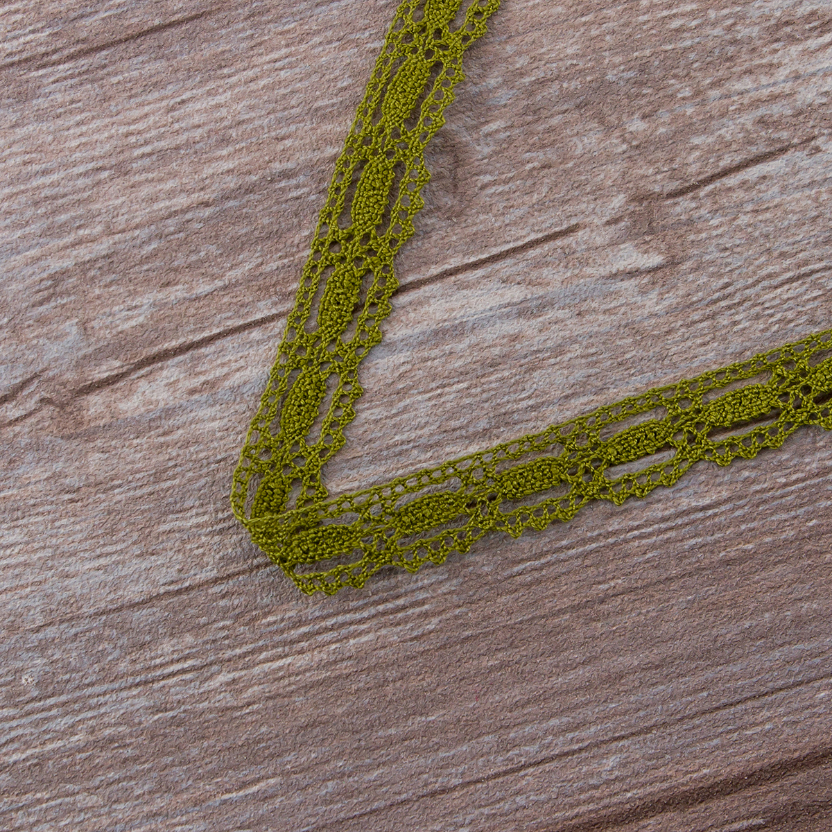 Мерсеризованное хлопковое кружево, 15 мм, цвет оливковый. Арт 1798/61