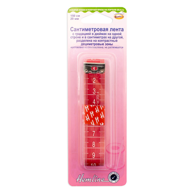 Двусторонняя сантиметровая лента из стекловолокна с градацией в сантиметрах (150 см) и в дюймах (60"). Иготовлена из пластика, укрепленного стекловолокном, чтобы исключить любую возможность деформации или растяжения, что обеспечивает ей высокое качество и долговечность. Ширина ленты 20 мм.