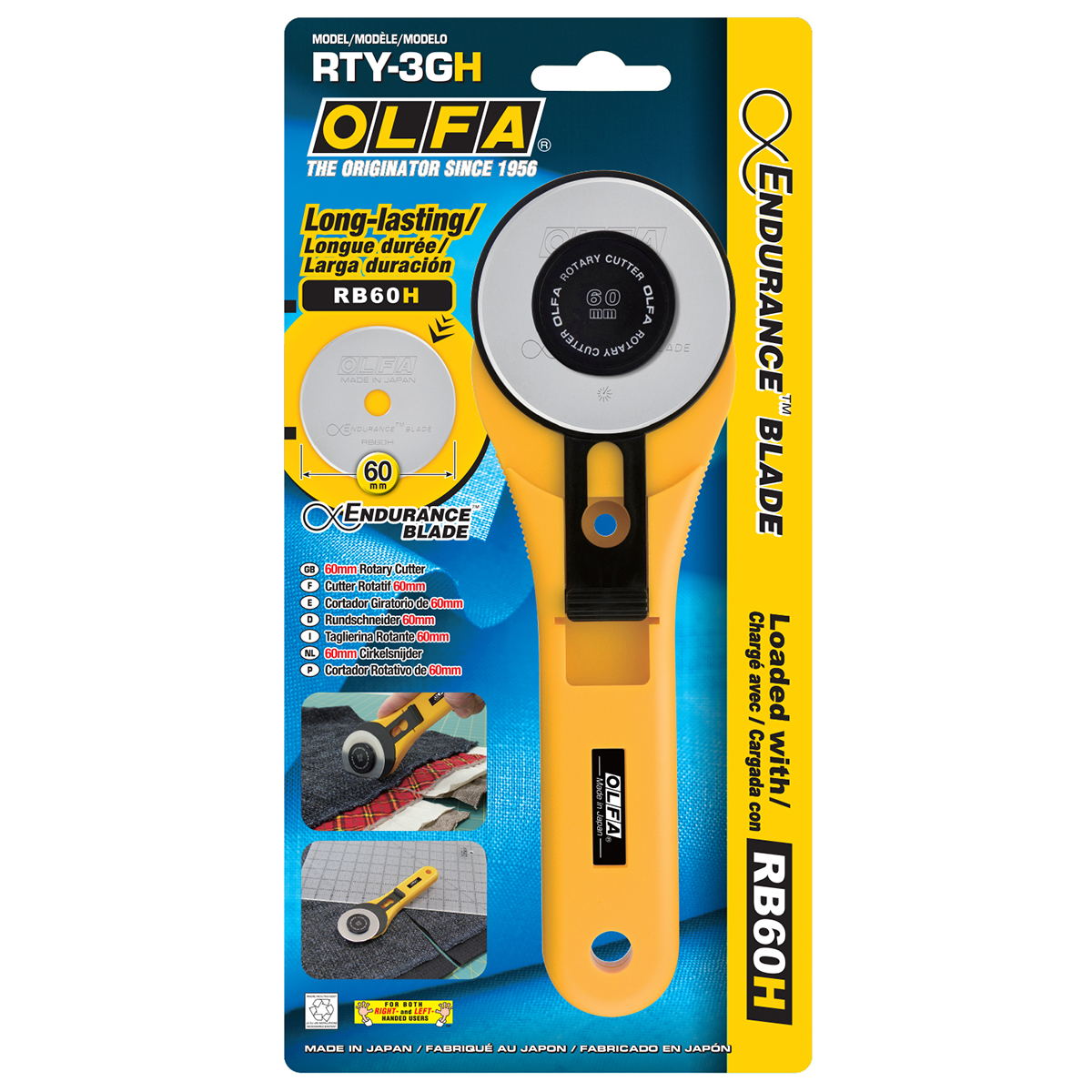 Используется как основной нож в пэчворке, для прорезания 6 слоев ткани, удобная система выдвижения лезвия,удобен праворуким и леворуким. Износостойкие лезвия “RB 45 H” и “RB 60 H” с удивительной длительной остротой превосходят стандартные RB 45 и RB 60 соответственно. Лезвия премиум-класса уходят дальше, в то время как нашим классическим лезвиям требуется более частая замена лезвия, лезвие Endurance помогает сэкономить время и деньги, и оно идеально подходит для пользователей Rotary Cutter. Имея на упаковке отличительный логотип, логотип ∞ ENDURANCE BLADE, он выделяется в толпе.