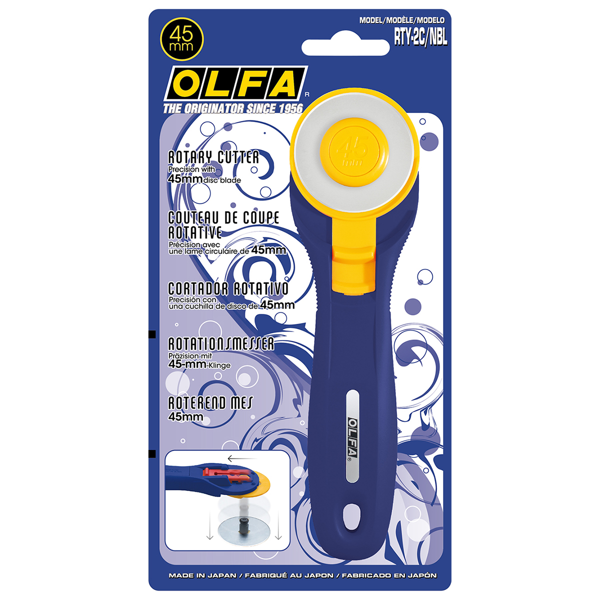 Используется как основной нож в пэчворке, для прорезания 6 слоев ткани, удобная система выдвижения лезвия,удобен праворуким и леворуким