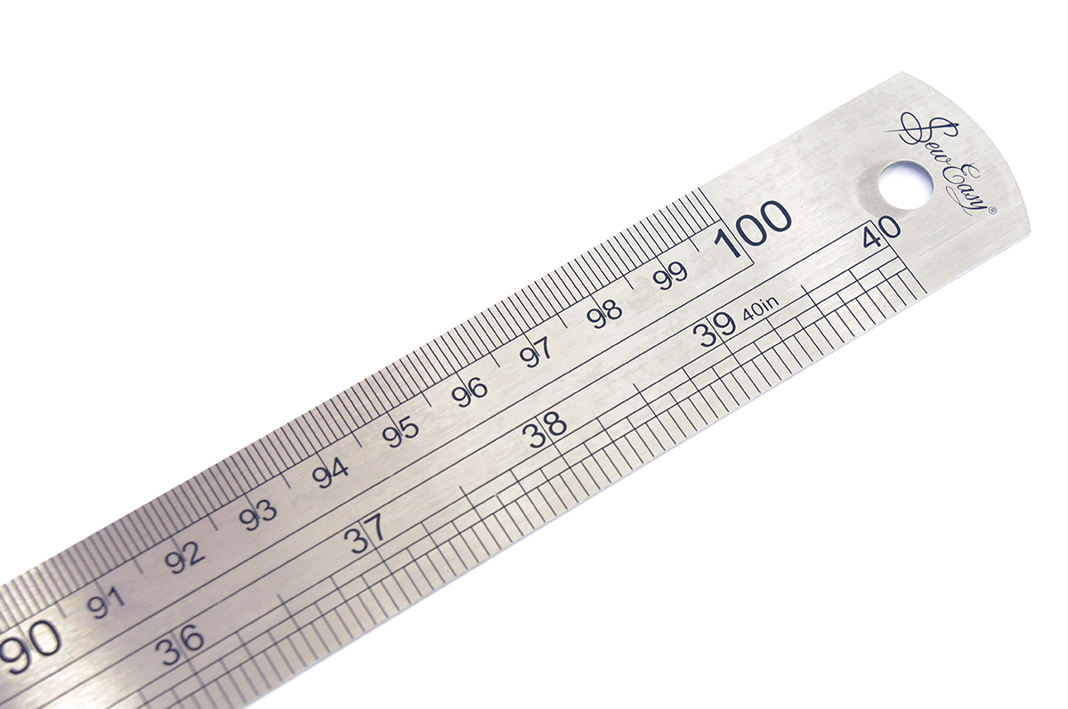 Метр металлический с градацией в сантиметрах и дюймах для измерения и ведения длинных линий при раскрое ткани. Линейка сделана из высококачественной стали. Отверстия в окантовке позволяют подвешивать линейки, уменьшая место хранения. На задней стороне линейки расположена удобная переводная таблица дюймов в миллиметры. Упаковано в стильный чехол марки Sew Easy. На линейке есть гравировка этой знаменитой марки.