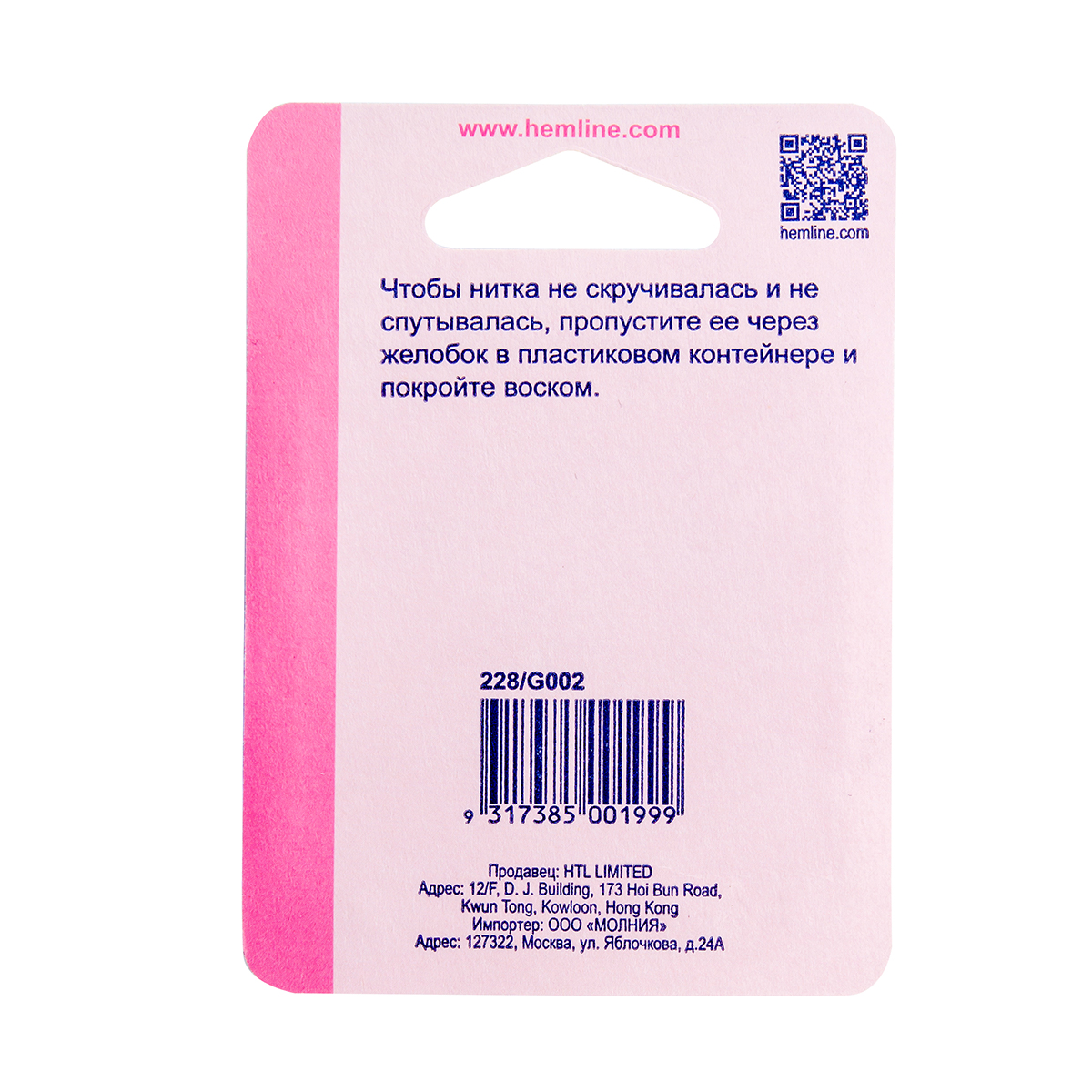• Парафиновое покрытие придаст вашей нити дополнительную прочность, сделает ее устойчивой к статическому электричеству и поможет ей скользить сквозь ткань и не создавать узлов.
