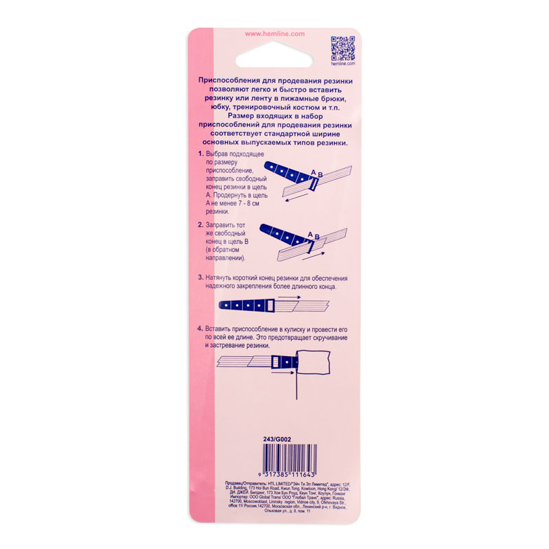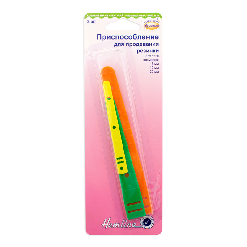 Вспомогательное устройство для продевания плоской трикотажной резинки в изделие.