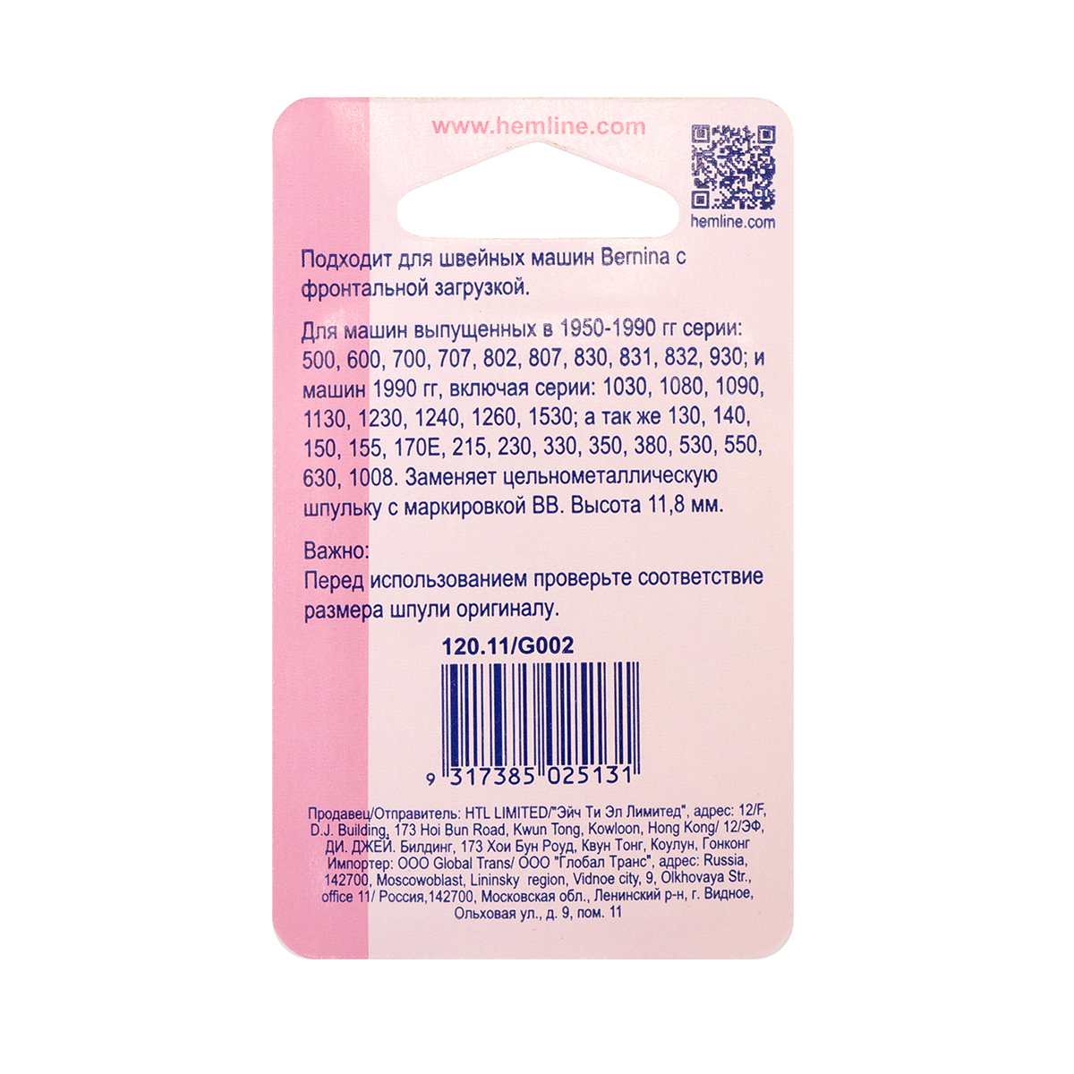 Подходит для швейных машин Bernina с фронтальной загрузкой.
