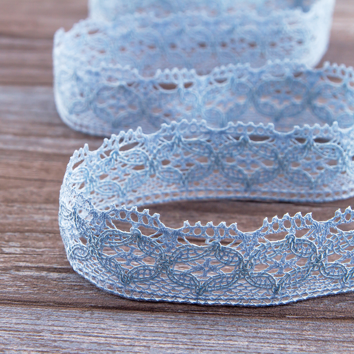 Мерсеризованное хлопковое кружево, 35 мм, цвет голубой. Арт 2222/19