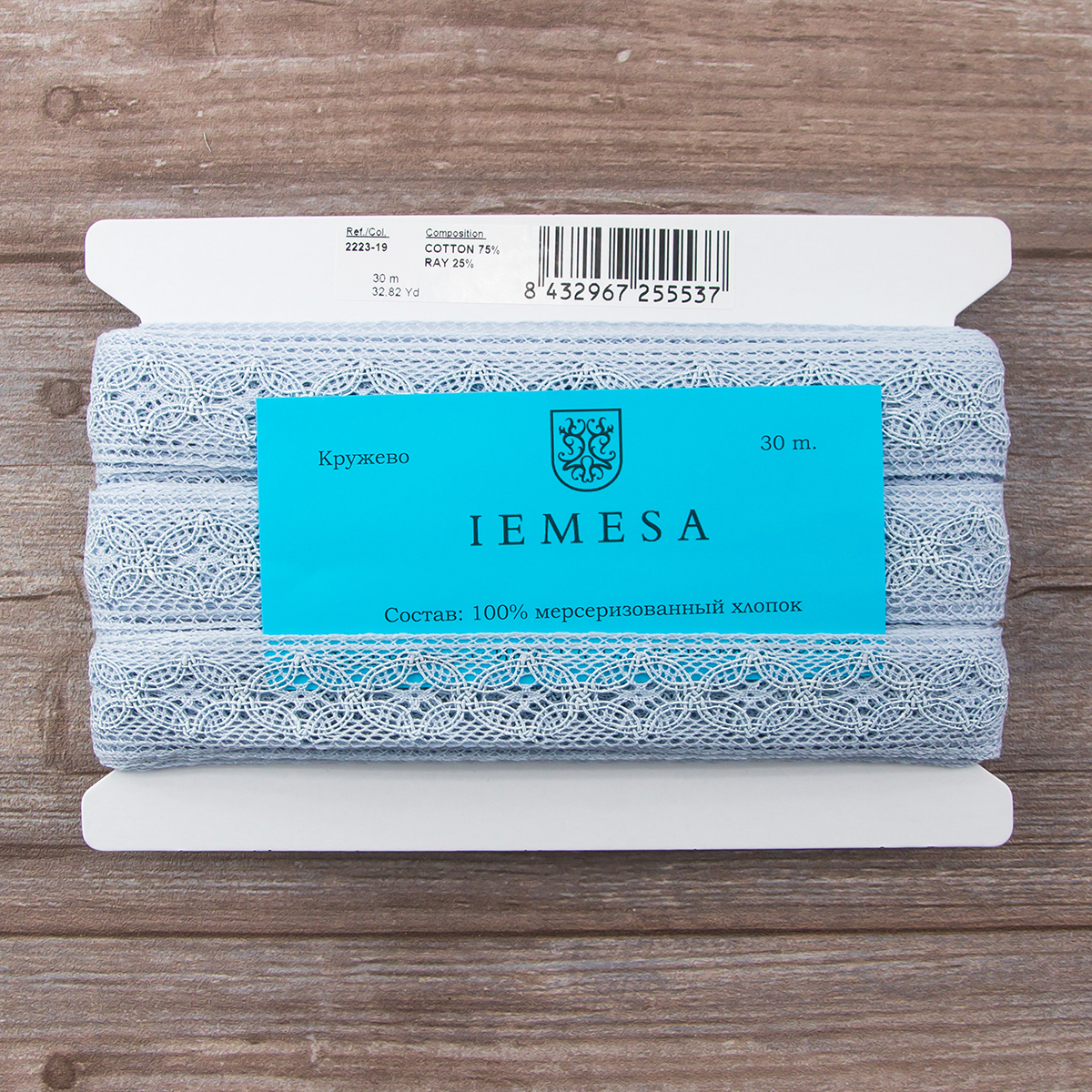 —Мерсеризованное хлопковое кружево, 35 мм, цвет голубой. Арт 2223/19