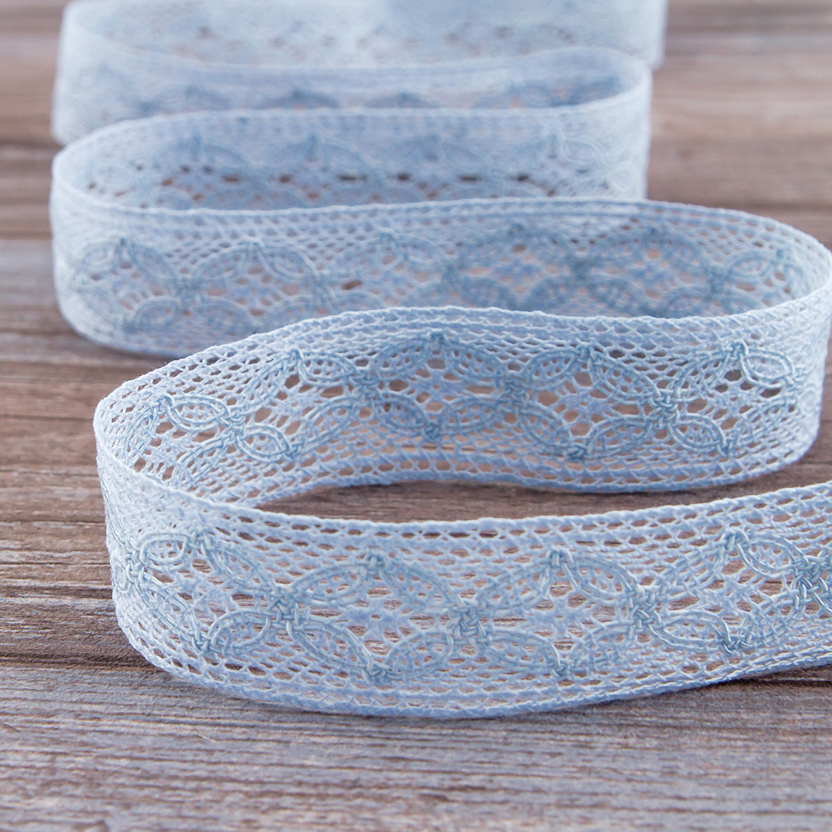 Мерсеризованное хлопковое кружево, 35 мм, цвет голубой. Арт 2223/19