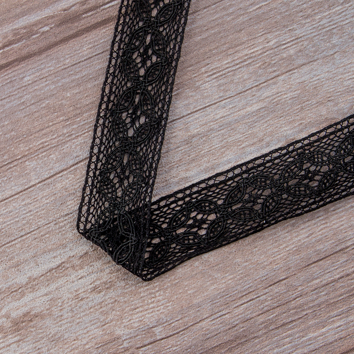 Мерсеризованное хлопковое кружево, 35 мм, цвет черный. Арт 2223/14