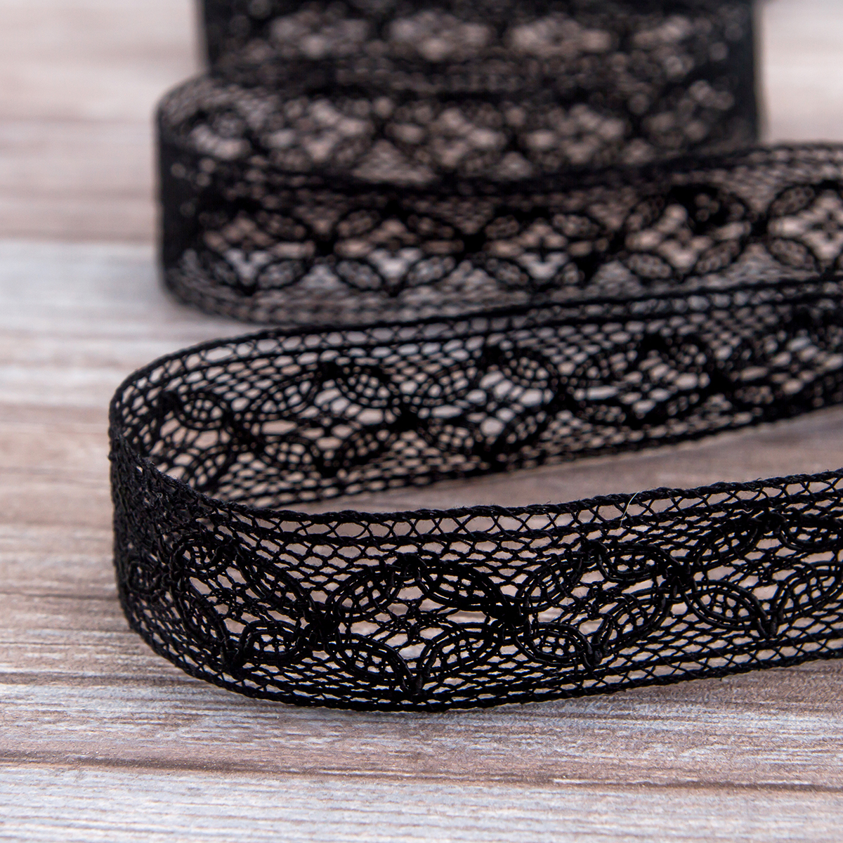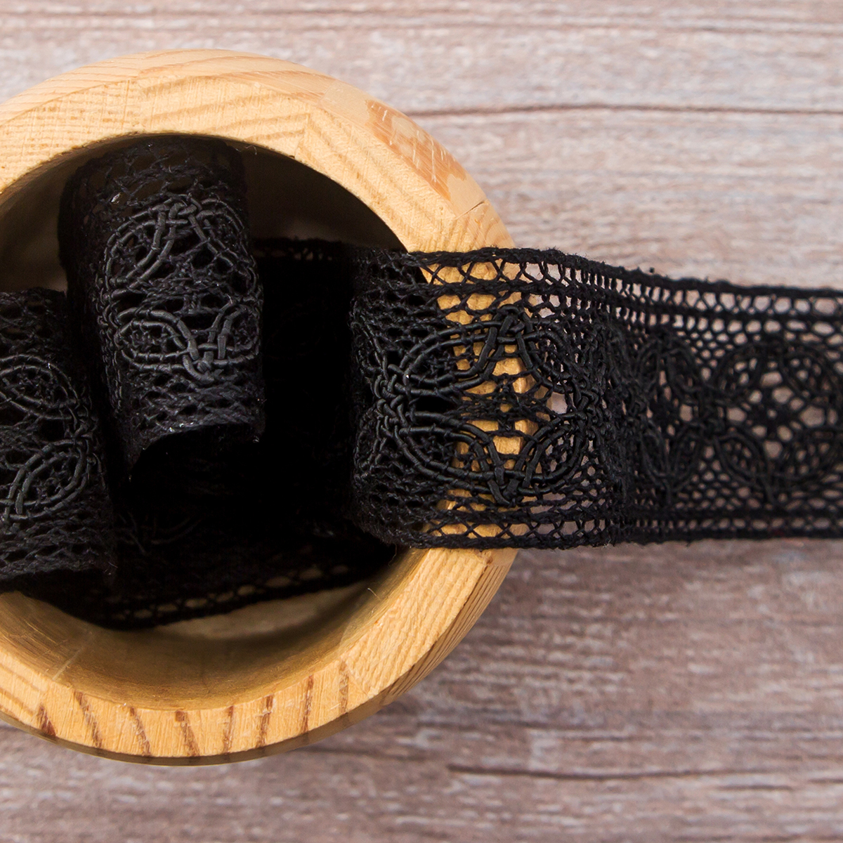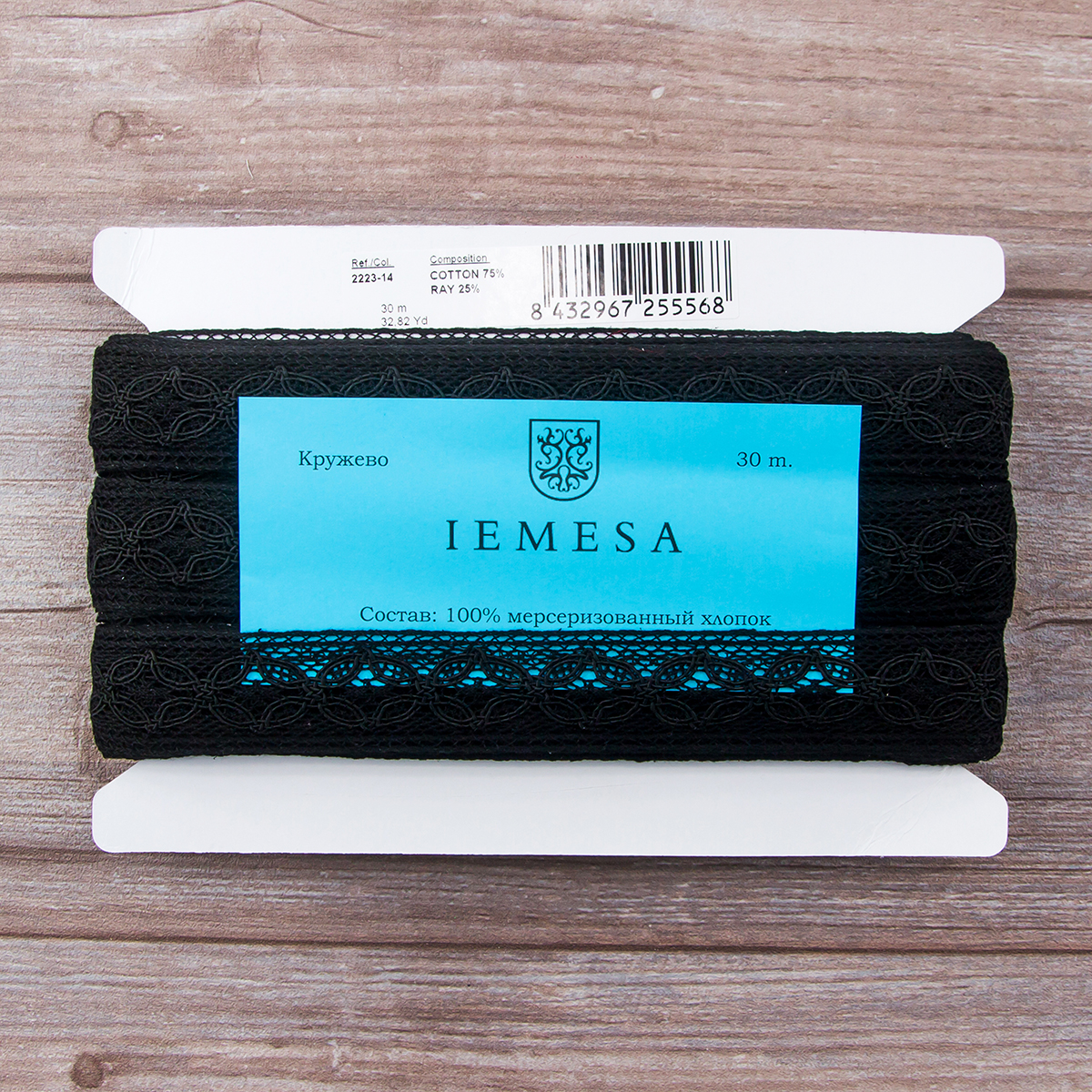 —Мерсеризованное хлопковое кружево, 35 мм, цвет черный. Арт 2223/14