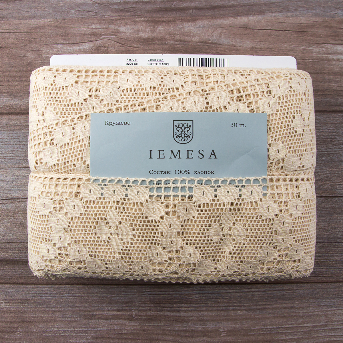 —Мерсеризованное хлопковое кружево, 95 мм, цвет экрю. Арт 2229/58