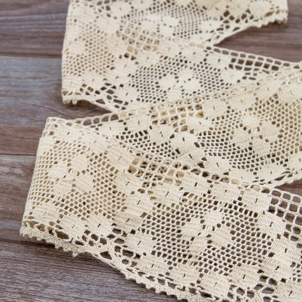 Изысканно-нежное испанское кружево, созданное современными дизайнерами по традиционным старинным рисункам и в традициях кружевоплетения. Изготовлено машинным способом, при этом имеет вид тонкой ручной работы. Использованы мерсеризованные хлопковые нити №40 для "тонкого" кружева и сочетание нитей №40 с толщинами №30, №24, №18 для придания фактурности. Кружево выпускается как в традиционных оттенках: снежно-белый, шампань, экрю, так и в соответствии с современным модным тенденциям в ярких и пастельных тонах. Сфера применения: декорирование интерьерного текстиля (подушки, покрывала, скатерти, дорожки, занавеси, абажуры), одежды в народном и винтажном стиле, рукодельных проектах по пошиву кукол, скрапбукингу. Производитель рекомендует деликатную стирку при 30 градусах, сушить в расправленном виде, гладить с изнанки при 2-ом температурном режиме на подложке. Кружево плетеное нельзя стирать в стиральной машине при 60 и 90 градусах на режиме "хлопок".