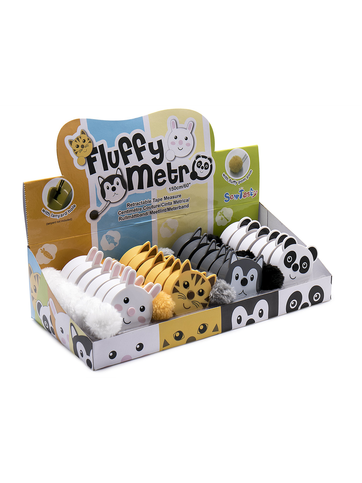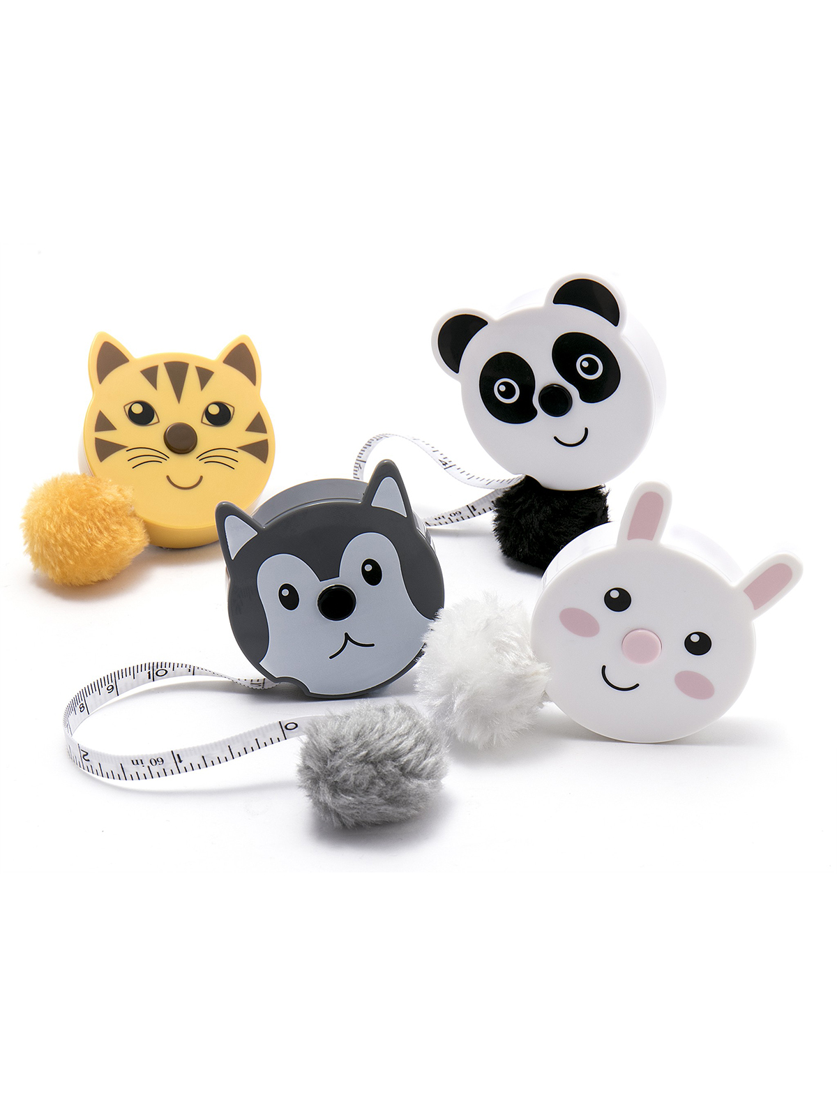 Сантиметр-рулетка "ZOO-4" в картонном прикассовом стенде, набор 24 шт. В дизайне «Кот», «Хаски», «Панда», «Кролик». С пушистым хвостом в виде помпона соответствующего цвета. 18 мм (0,7 дюйма) в ширину x 150 см (60 дюймов) в длину с выдвижной рулеткой. Имперская (статутная) система с одной стороны, метрическая система с другой. Начало измерений можно увидеть и использовать. Встроенный слот для шнурка обеспечивает возможность ношения. Размеры товара: 31 x 14 x 21 см. Вес брутто товара: 450 г.