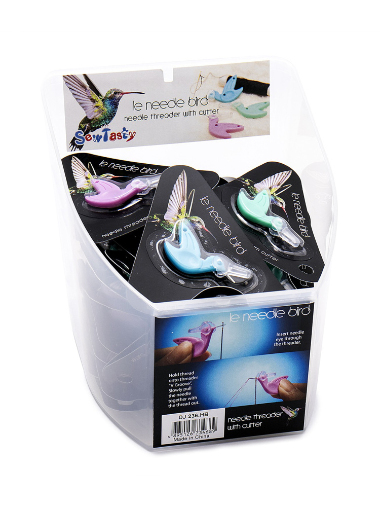 Нитевдеватель "Колибри", в прикассовом стенде. Новый дизайн в стиле Колибри. Откидная крышка для защиты металлической нити, когда она не используется. Встроенный шнурок позволяет подвешивать устройство. Просто нарезайте и обрезайте с помощью резака для безопасной резьбы. Простая в использовании инструкция на упаковке. Цвет: синий/ зеленый/ фиолетовый. Размеры изделия: 15 x 16 x 15 см. Общий вес изделия: 330 г.
