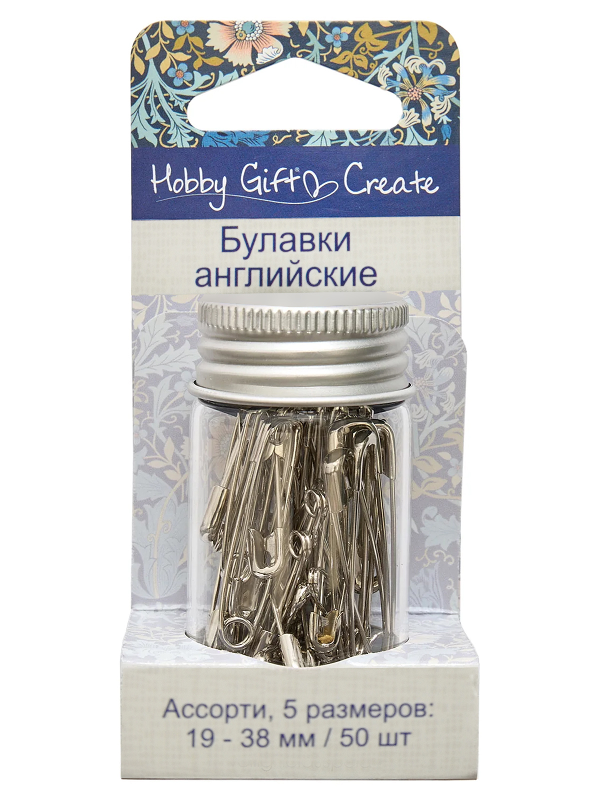 Булавка состоит из двух скрепленных деталей: стержня, загнутого посередине в спиральное кольцо, и щитка (головки), закрывающего острие стержня при замыкании булавки для защиты от случайного укола. В набор входит: Булавки длиной 19 мм, 23 мм, 27 мм, 34 мм, 38 мм (размер 00,000,0,1,2) по 10 шт - всего 50 шт. Внимание! Детям использовать только под присмотром взрослых.