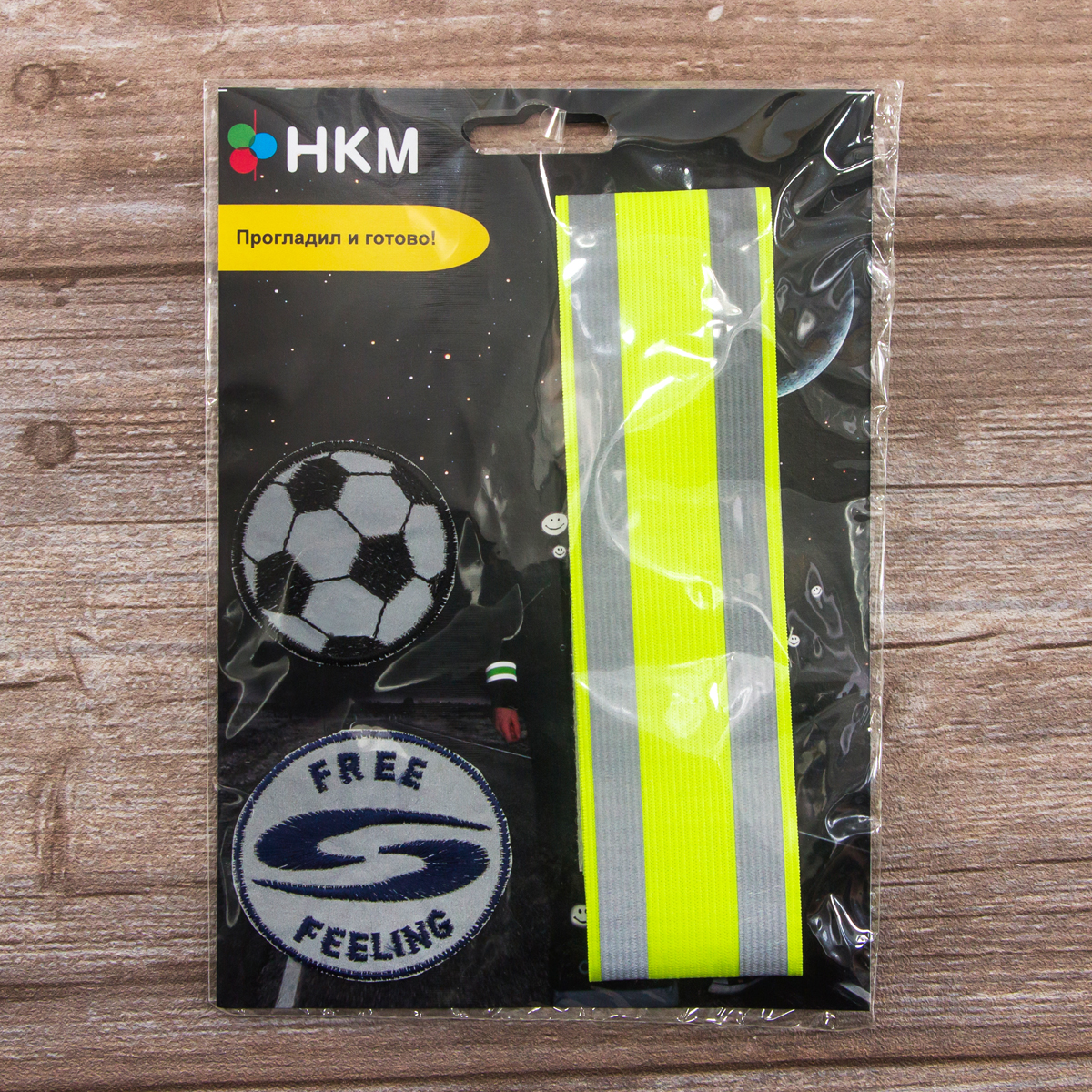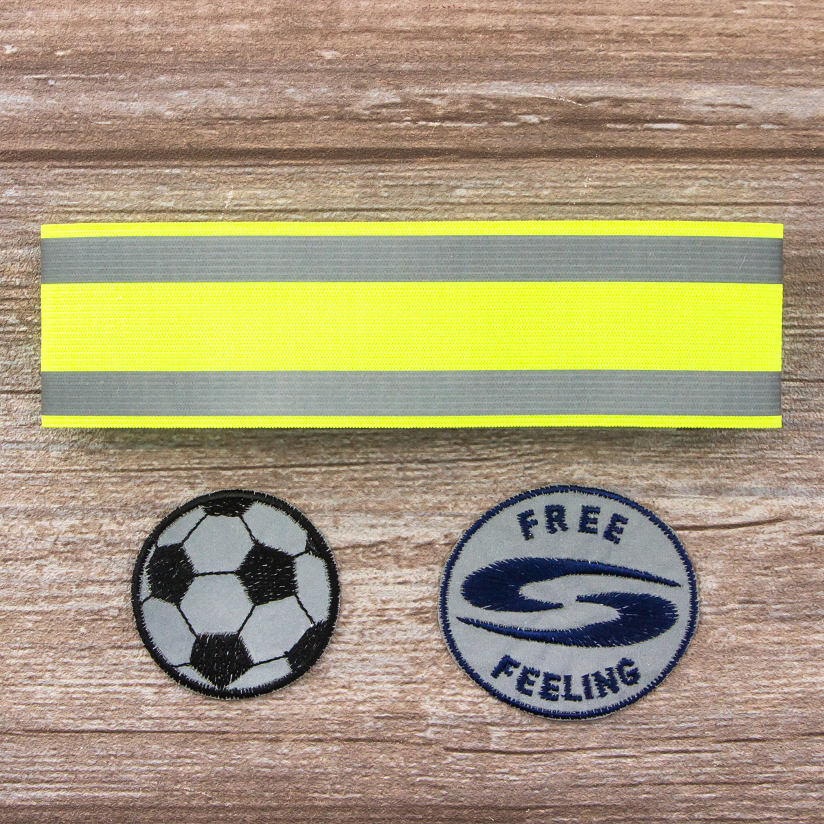 В комплект входит две светоотражающие аппликации и эластичная манжета на липучке со светоотражающей полосой. Артикулы 1048RSB,1049RSB, 1050RSB.