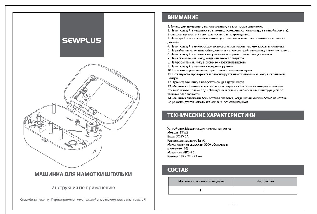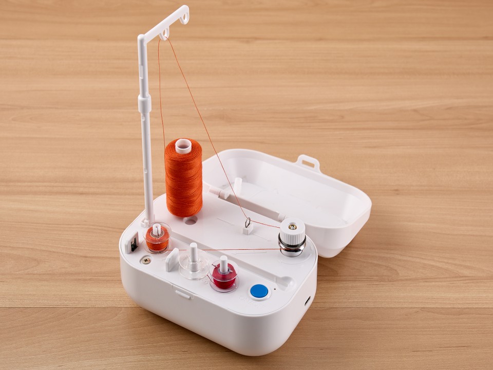 Особенности: Быстро наматывайте шпульки без швейной машины. Поддержка, как аккумулятора, так и источника питания USB (Tип-C). Выключатель питания со светодиодным индикатором. Автоматическая остановка, когда шпулька полностью намотана. Подходит для большинства пластиковых и металлических катушек. Дополнительный шпиндель для шпульки машины PFAFF/VIKING.