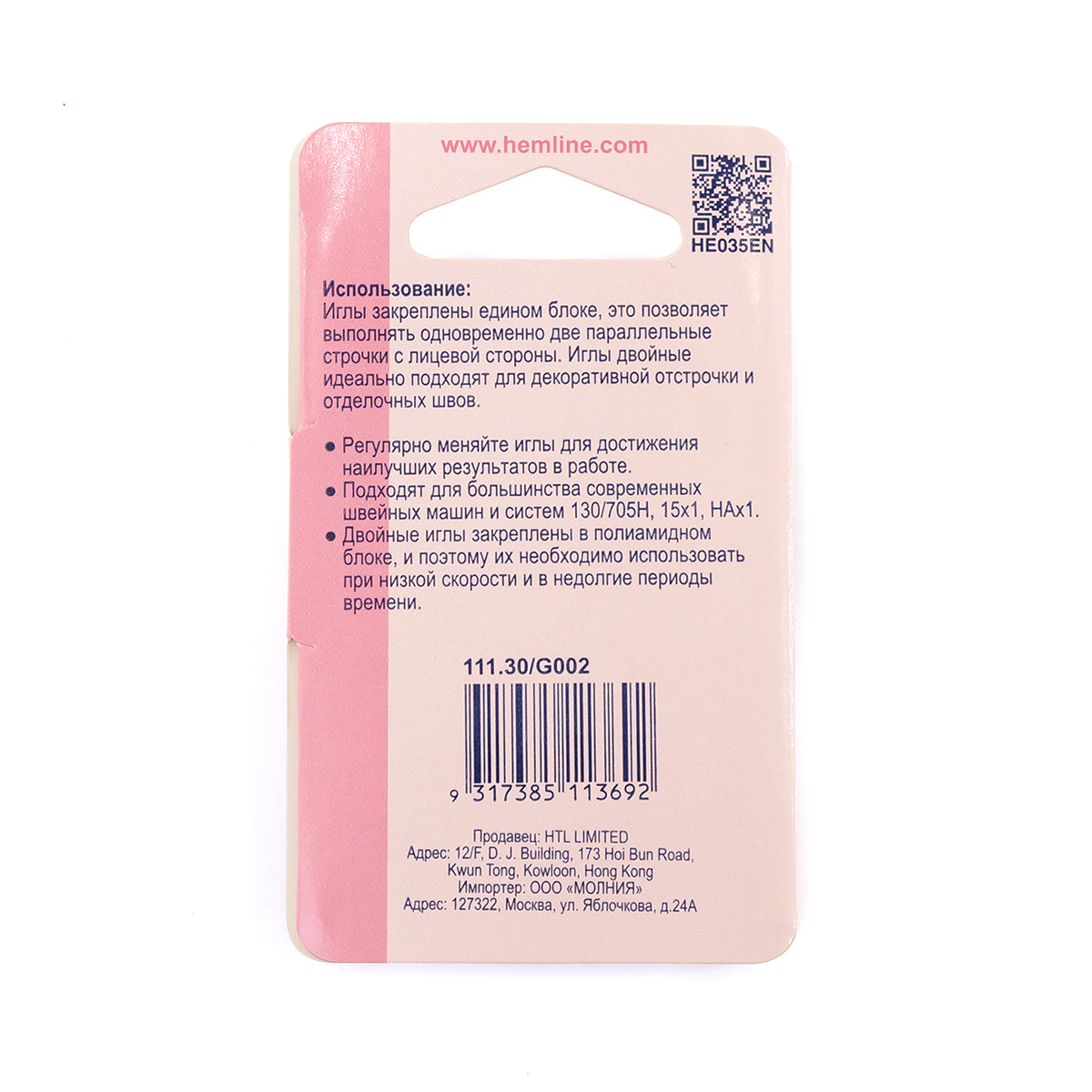 *Двойные иглы закреплены в полиамидном блоке, и поэтому их необходимо использовать при низкой скорости и в недолгие периоды времени.