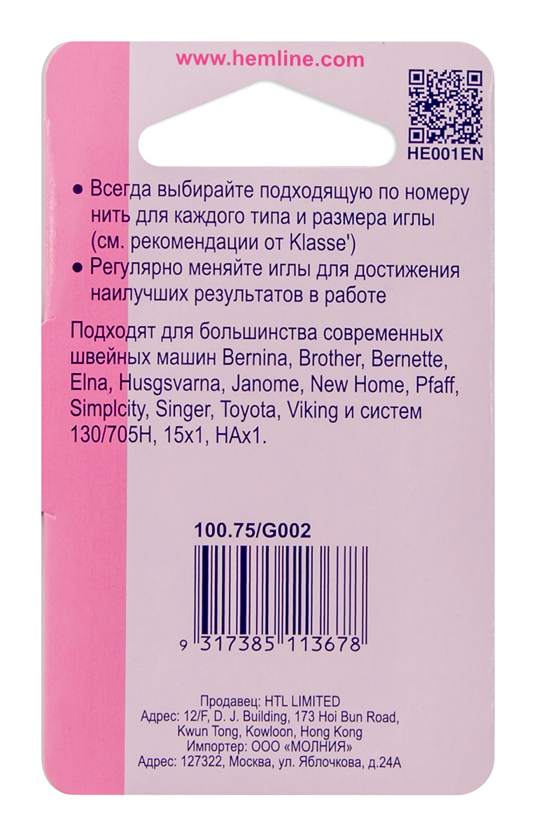 Подходят для большинства современных швейных машин Bernina, Brother, Bernette, Elna, Husgsvarna, Janome, New Home, Pfaff, Simplcity, Singer, Toyota, Viking и систем 130/705H, 15х1, HAх1.