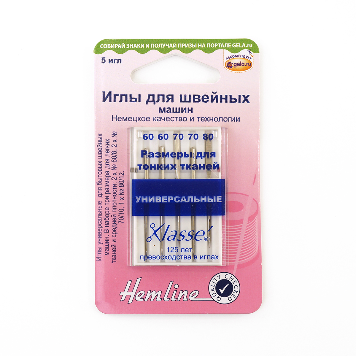 В наборе три размера для легких тканей и средней плотности: 2 х № 60/8, 2 х № 70/10, 1 х № 80/12.
