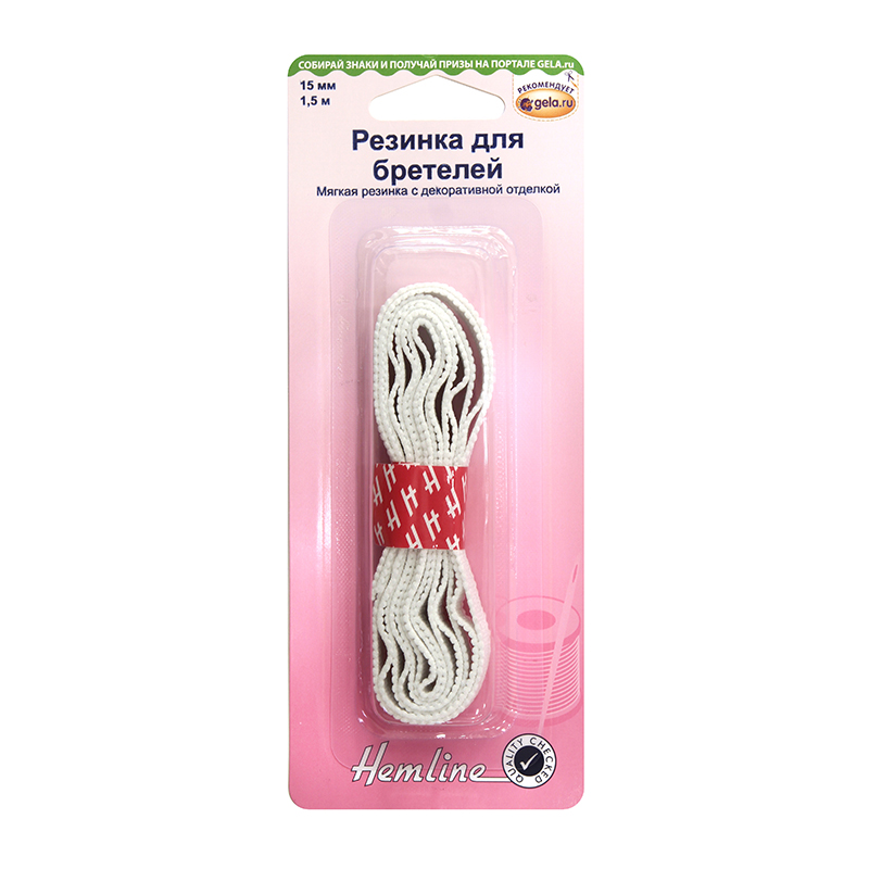 Мягкая и удобная эластичная резинка для бретелей. Край с отделкой. В упаковке 1,5 метра. Ширина 1,5 мм